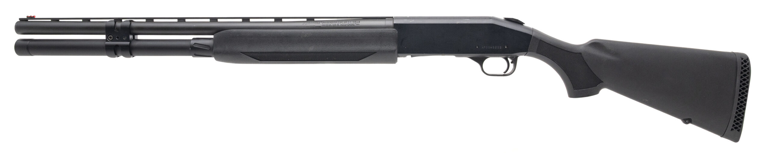 SN: AF0043533. Modern production, 12 gauge with a 24" Accu-choke vent rib barrel w/removable choke chambered for 2 3/4" & 3" shells. Bore is very good. Semi-auto tactical shotgun with a fiber-optic front sight, matte black finish, and black synthetic stock & forend with a 14" LOP. Finish shows minor handling marks. Overall condition is near excellent. DALLAS LOCATION.