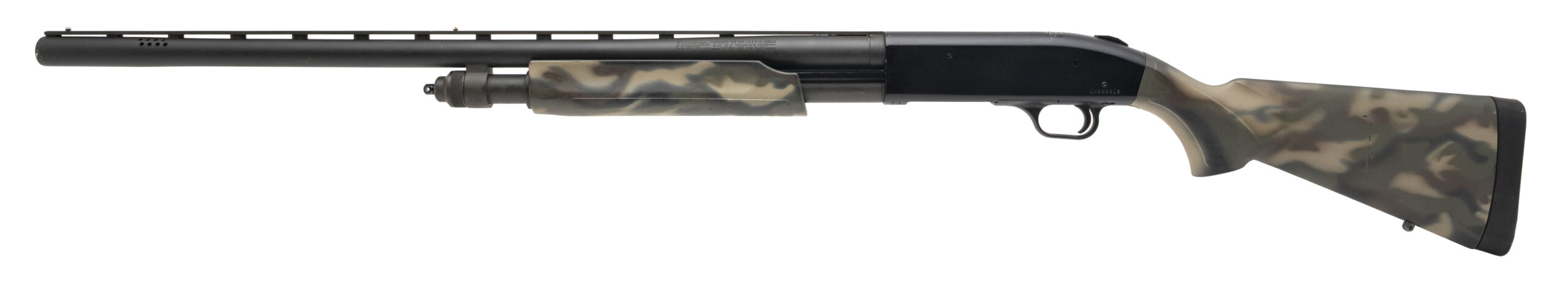 SN: UM685812. Modern production 12 gauge pump action shotgun with a 28" vent rib ported barrel, 3 1/2" chamber and screw in choke. Synthetic stock with factory camo painted finish and a 14.25" LOP to the factory pad. Some wear and handling marks visible throughout the finish but overall in very good solid condition with an excellent bore.
