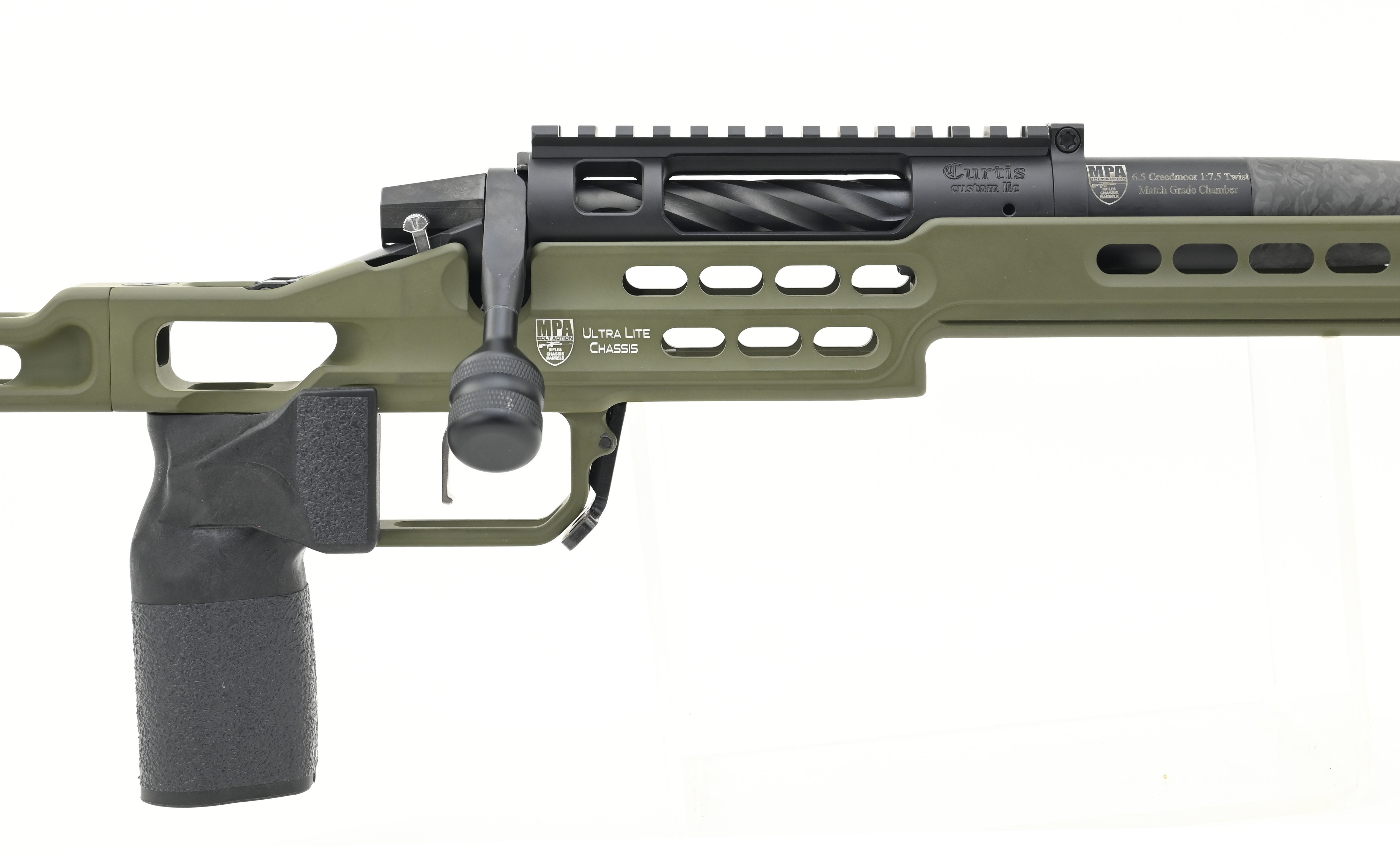 MPA/ Curtis Custom Axiom 6.5 Creedmoor caliber rifle. BA rifle with 24” carbon fiber match grade hand lapped barrel, Trigger Tech trigger, aluminum V-bedded ultra-light chassis and Curtis Custom Axiom action. New.