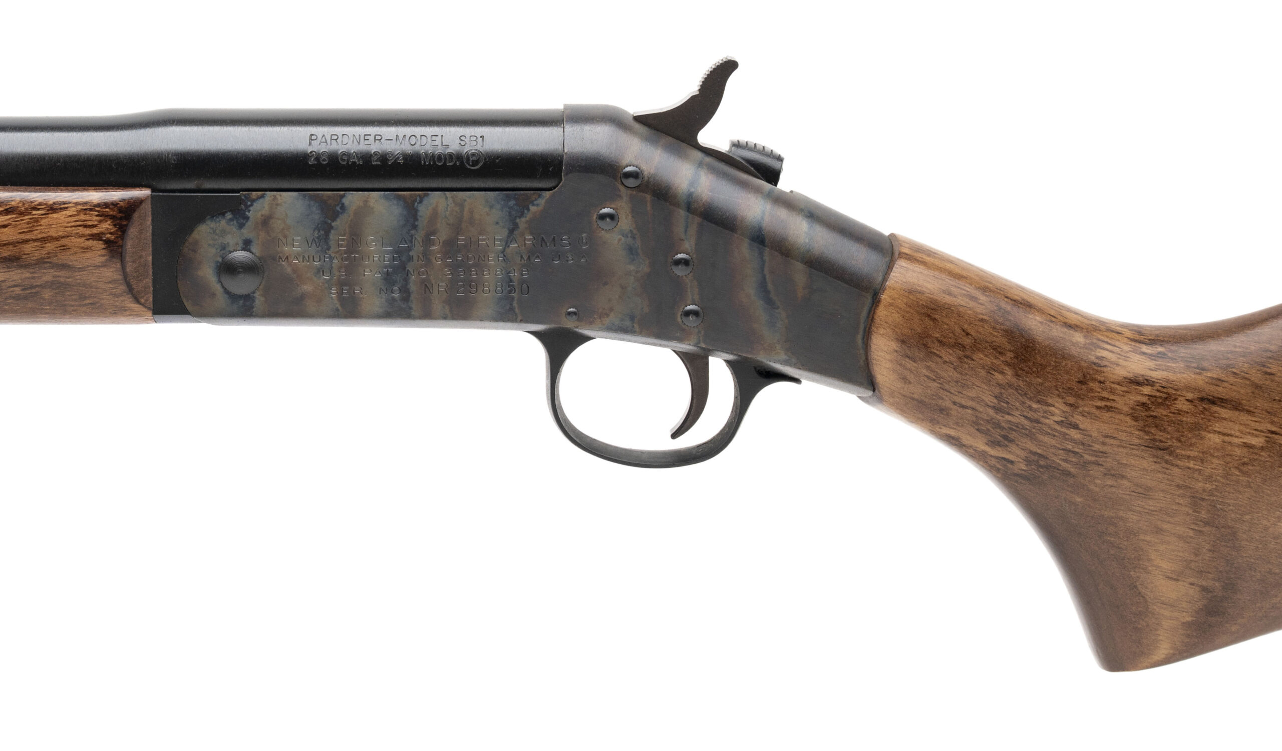 SN: NR298850. Modern production, 28 gauge with a 25.5" barrel. Bore is very good. Single-shot field shotgun with case color hardened receiver, blue finished barrel, and engraved wood stock & forend with a 14.5" LOP. Finish shows minor handling marks. Overall condition is very good.