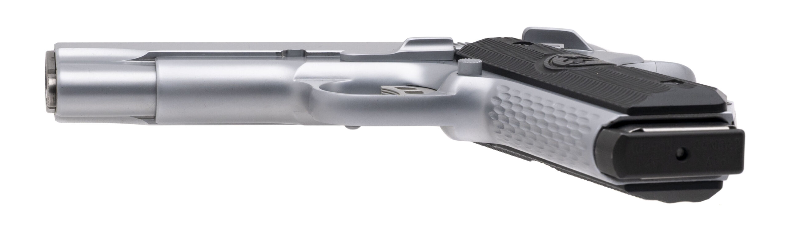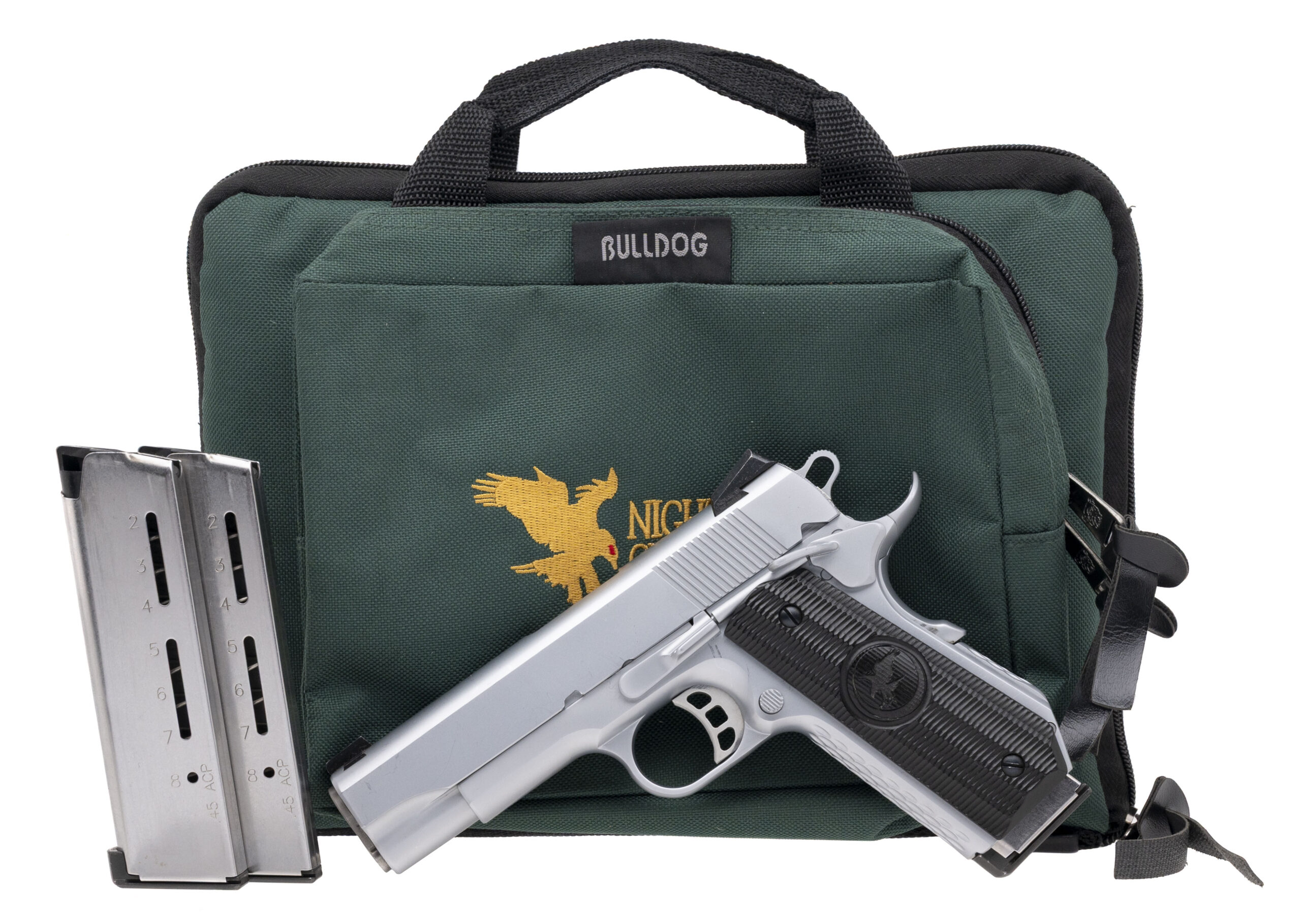SN: NHC08428. Modern production, .45 Auto with an 4.25" match grade crowned barrel. Bore is bright with strong rifling. Stainless steel custom Commander 1911 pistol with an Ed Brown style bobtail and g10 grips. Metal shows light marks but the overall condition is very good. Comes with NHC carry bag and two extra magazines.