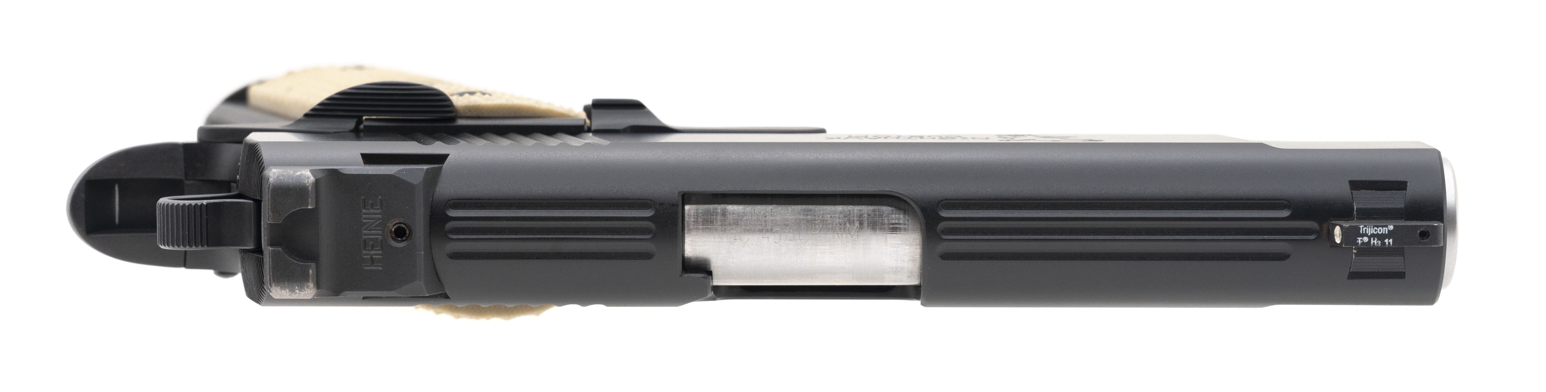 SN:NCP11780. Modern production .45 ACP with a 5" barrel. Bore is in excellent. full size 1911 frame with Heine trijicon rear-front sights, flared magwell and night hawk g10 grips. Overall condition is excellent.