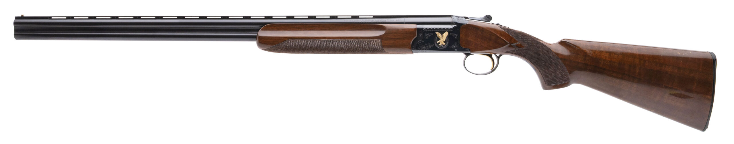SN: N259737, made in Japan circa 1980's. 28 gauge over under field shotgun with 26.5" barrels, 2 3/4" chambers and fixed chokes IC/MOD. Blued metal finish, engraved receiver with raised gold eagle, gold plated selective single trigger, ejectors and a manual safety. High gloss checkered walnut furniture with a 14" LOP to the factory butt plate. Some light handling marks on the furniture, Metal finish is very good and bores are excellent. Comes with original Nikko case.