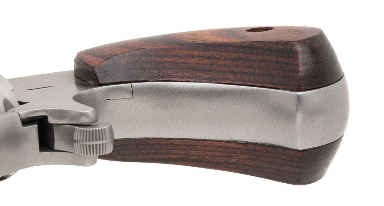 SN: E181957. Modern production, .22 Magnum with a 1-5/8" barrel. Stainless pocket revolver with wood grips. Overall condition is very good.