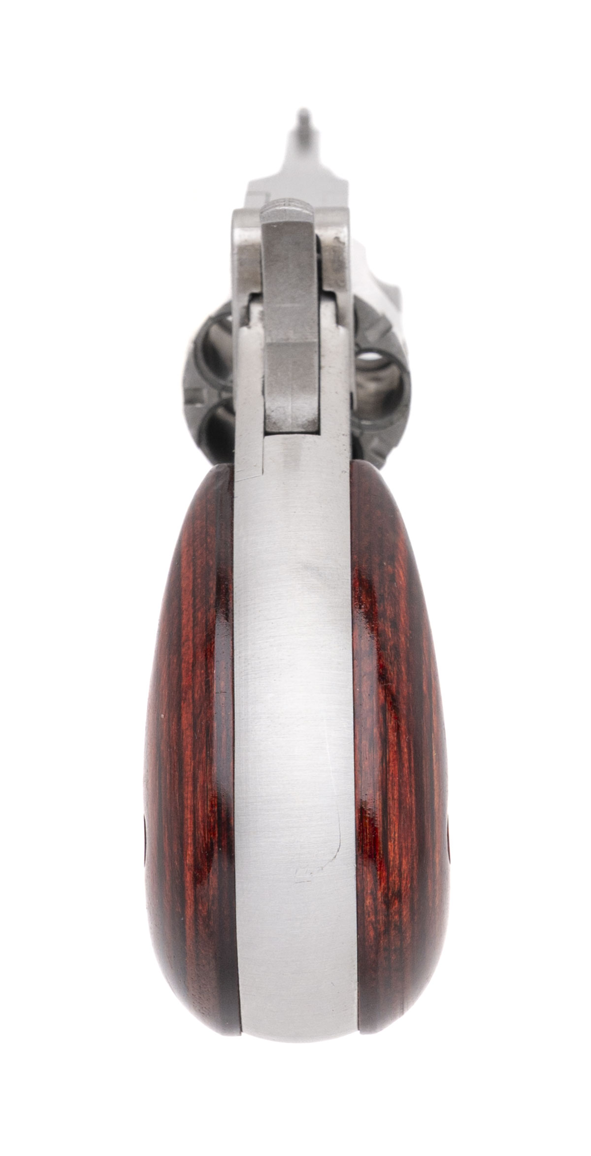 SN: BTN02858. Modern production, .22 Magnum with a 1.625" barrel. Bore is very good. Stainless steel rimfire pocket revolver with wood grips. Metal shows light marks but the overall condition is very good.