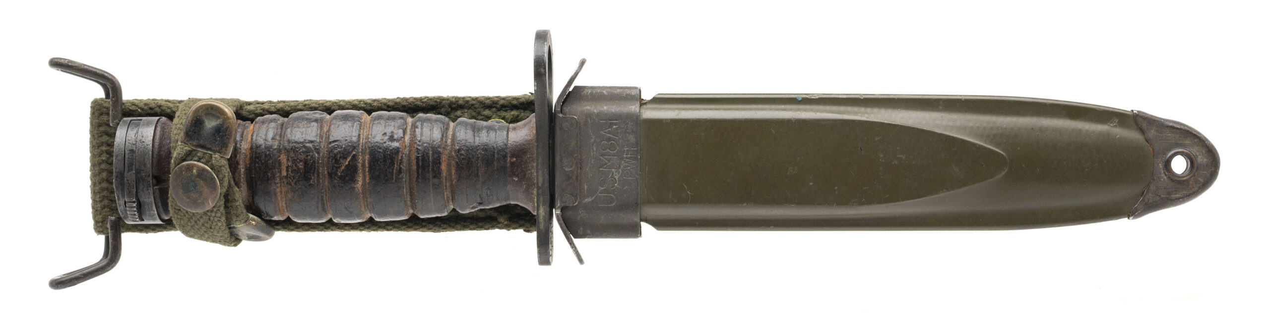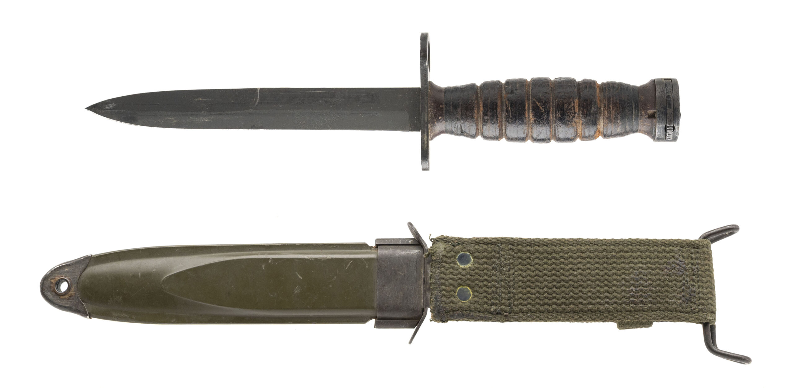 USGI PAL 6.5-inch M4 bayonet with M8A1 fiberglass-reinforced nylon scabbard for the M1 Carbine.