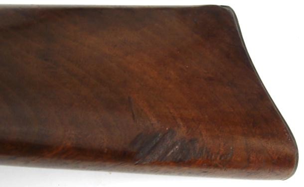 Palmer Civil War carbine with original brown on barrel. Thinned wood is very good but has a deep gouge on lower left of buttstoc (al1950)