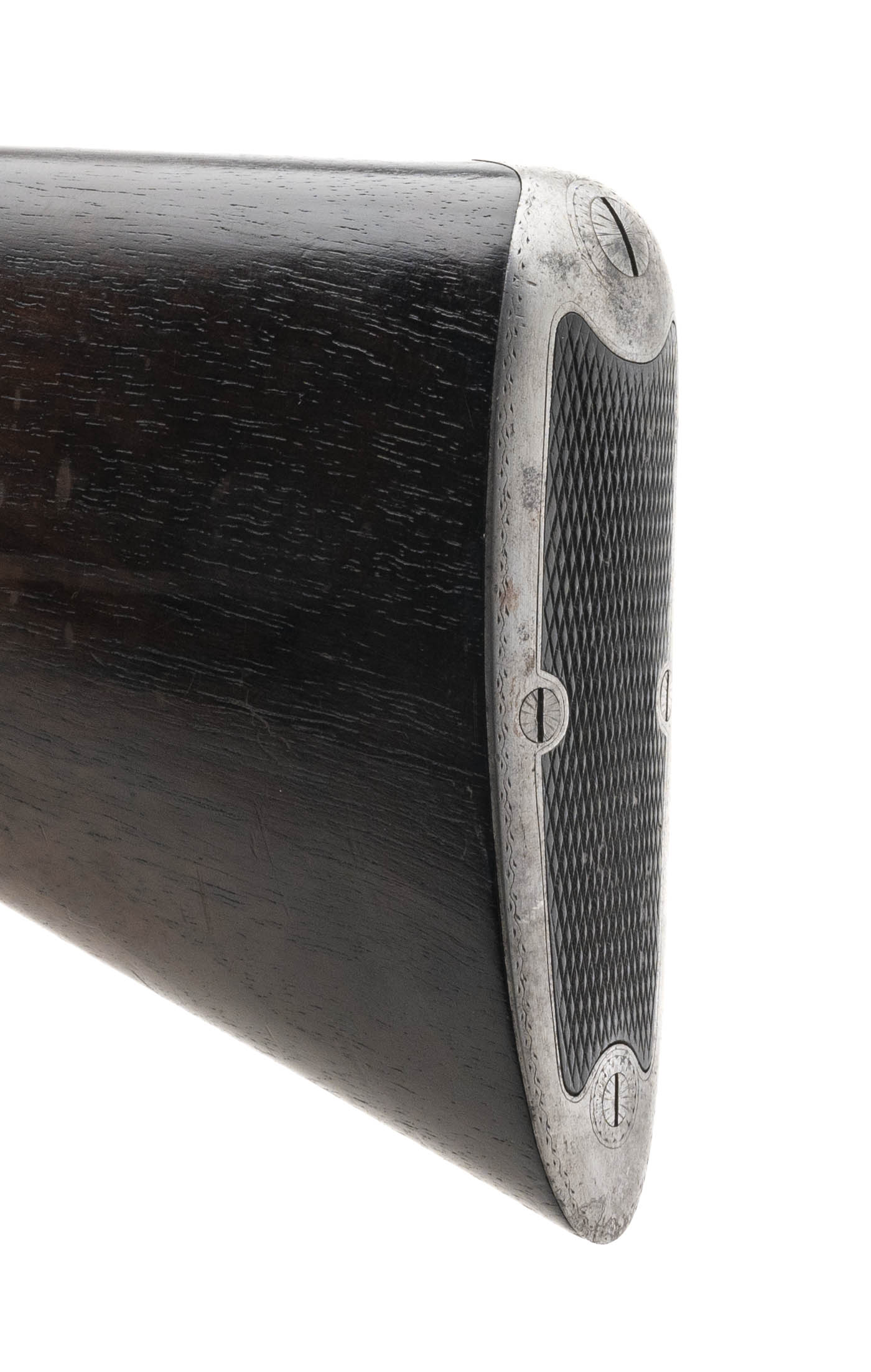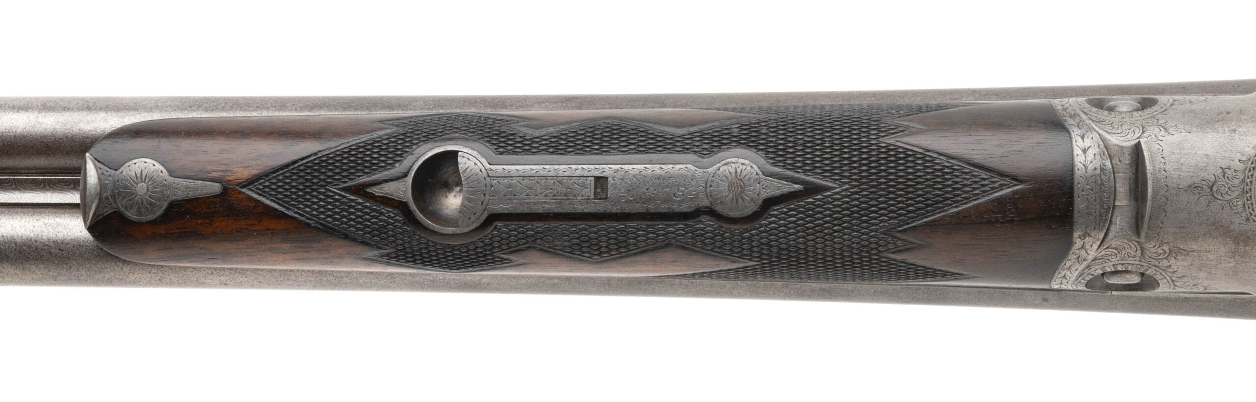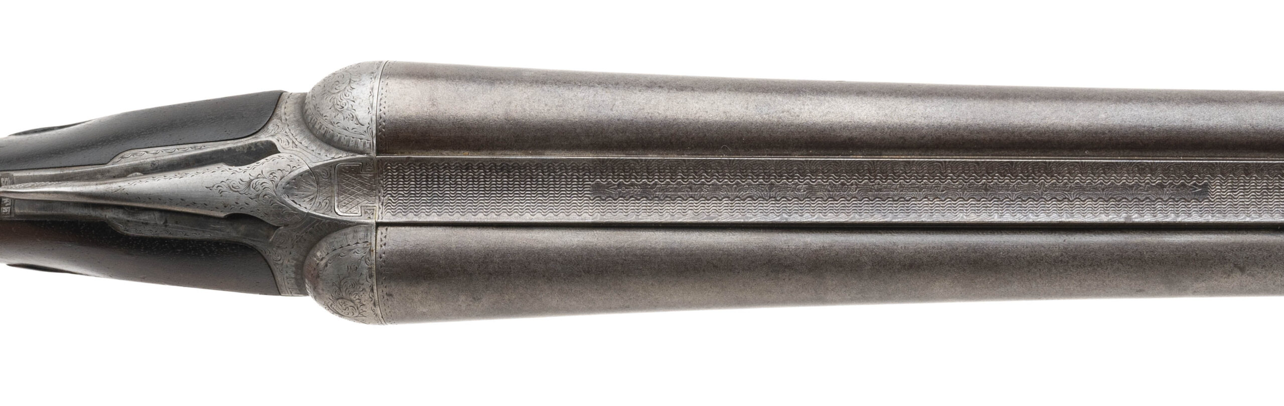 SN: 88266 made in 1898 in Meriden CT. 16 gauge side by side with 28” Damascus barrels with a single silver bead and 2 ½” chambers choked Cylinder and Improved Cylinder on a #1 frame. Box lock with extractors and double triggers. LOP measures 14 ¼” to the original engraved skeleton butt plate with a drop of 1 ¾” to 2 7/8”. Bores are bright with some signs that a couple small dents were removed. Barrels and action are in good condition with the pattern slightly faded but fully visible throughout the barrels and some of the original case color visible on the finely engraved action. The wood is in very good condition for its age with just some minor handling marks and signs of wear and the stock has its original grip cap and metal stock oval. Barrels are on face with no play and the action locks up tight with the top lever resting just right of center. Overall weight is 6 lbs 12 oz.