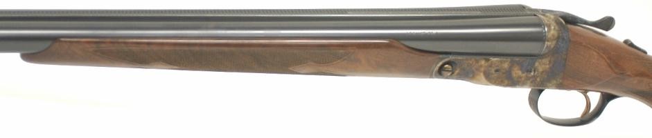 Parker Repro DHE 12 gauge side by side shotgun. Single trigger & auto ejectors.