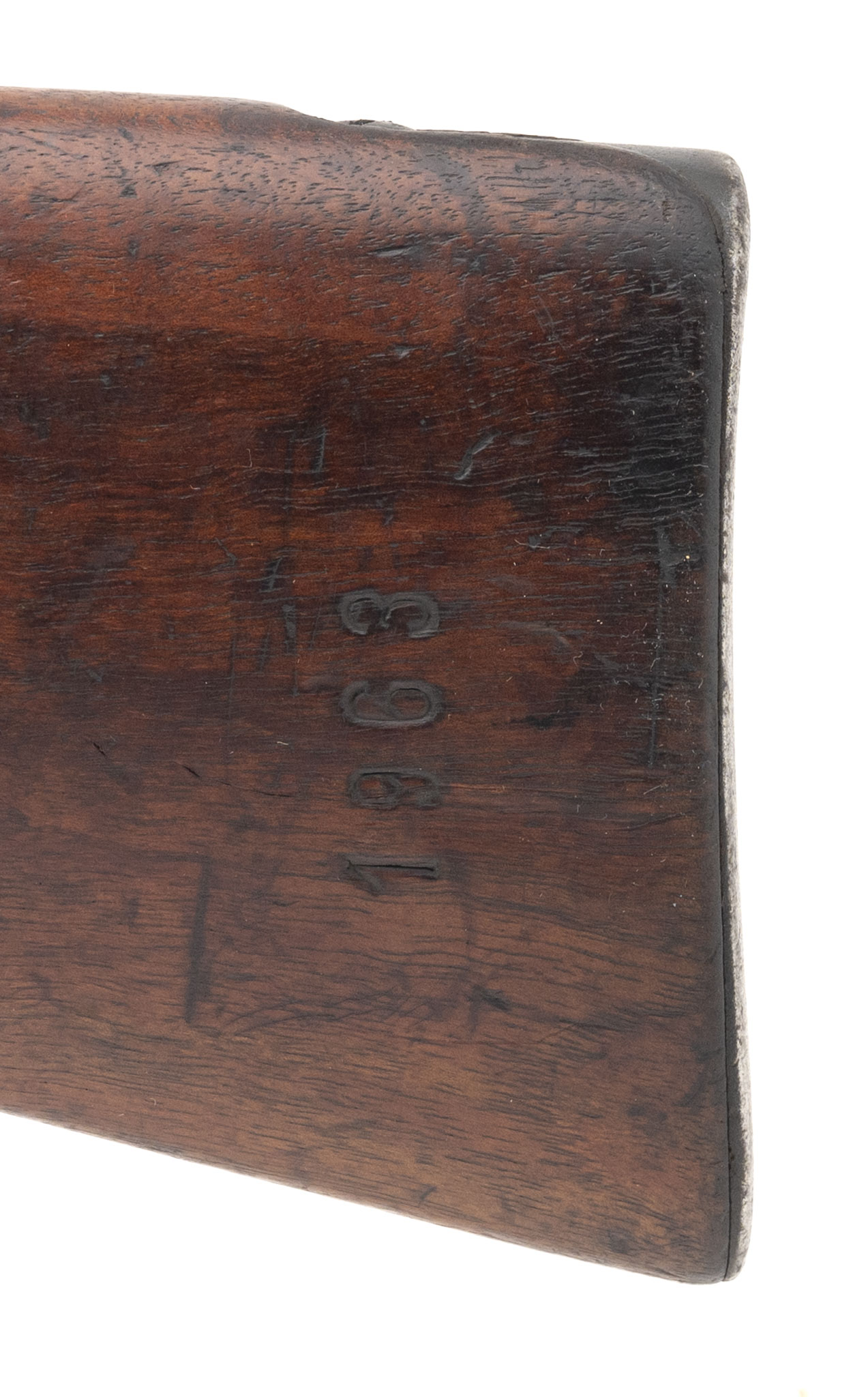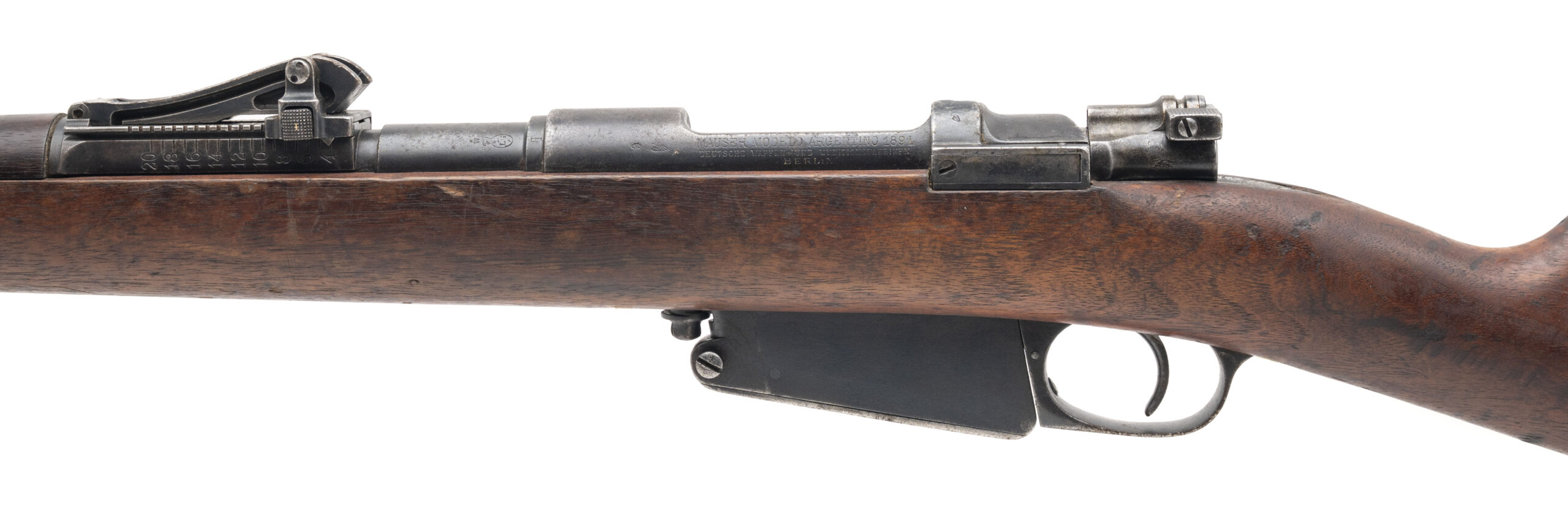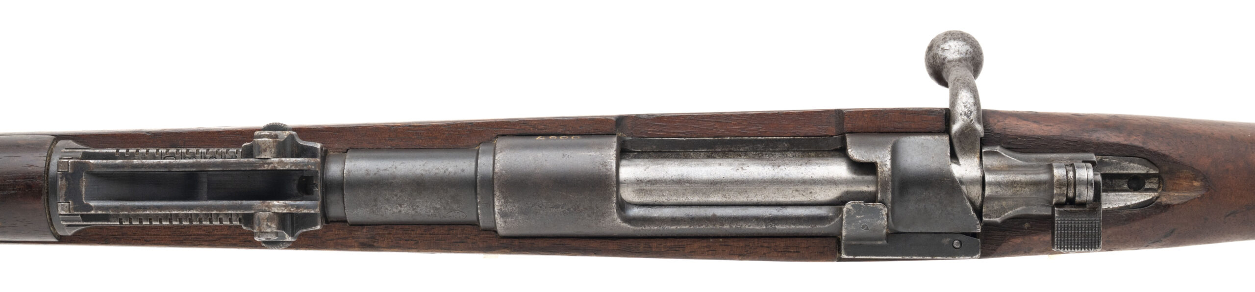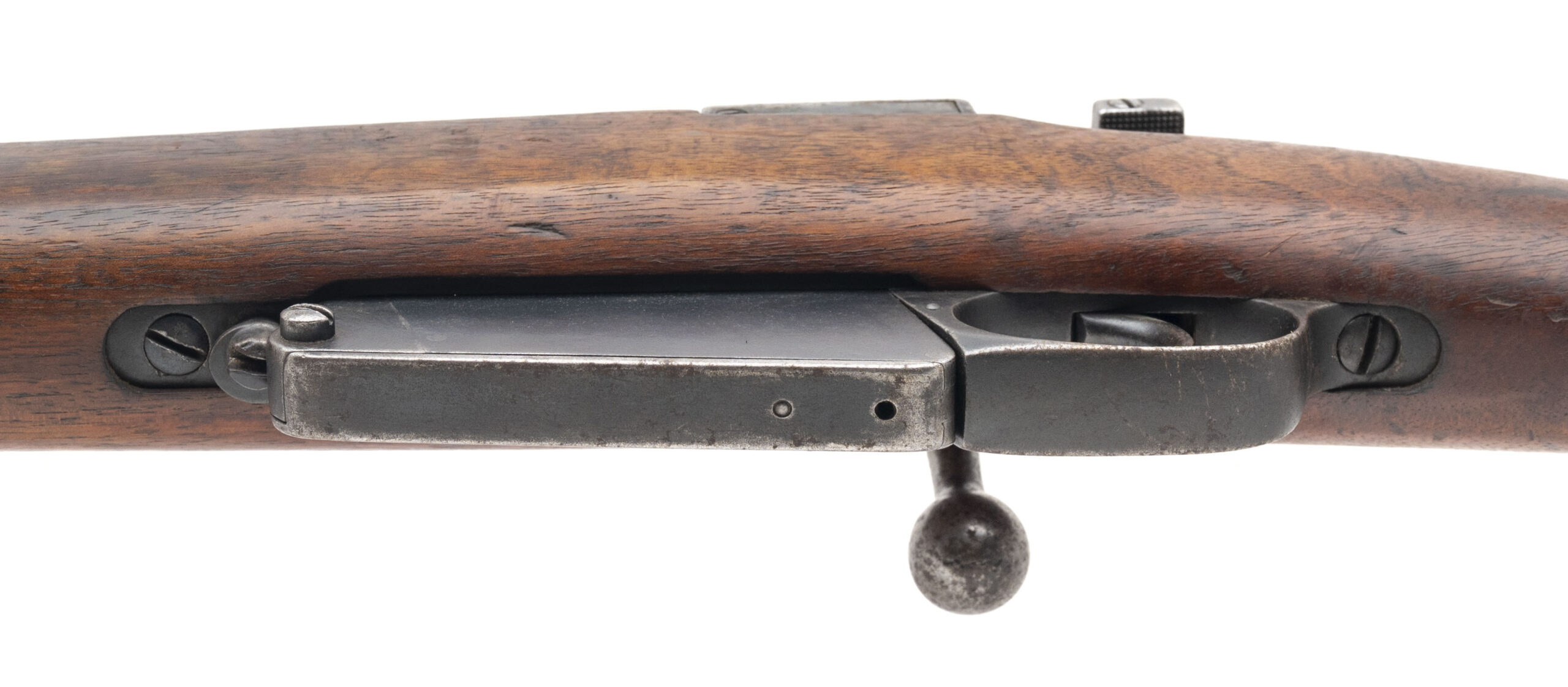Serial No. 0097, rebuilt circa 1912, 18” round barrel. Originally produced as part of the Argentine M1891 Mauser contract, this rifle was later sold to Peru, where it was arsenal-converted into a carbine configuration in 1912. These converted carbines are sometimes referred to as “1912 Rebuilds”, part of Peru’s effort to modernize its arms while reusing existing stockpiles. The barrel bears Belgian proof marks, and faint traces of the original Argentine crest are still visible on the receiver—evidence of its earlier service life. Serial numbers are not matching, and the bolt is unmarked, typical for these refitted rifles. Metal finish has thinned to a light grey patina, with light surface oxidation noted throughout. The stock is solid but shows the expected field wear, including nicks, dings, and scratches from decades of service use. The action is smooth and functions correctly, making this a fascinating and functional example of South American arms recycling in the early 20th century. A historically significant Mauser variant that bridges two national military histories.