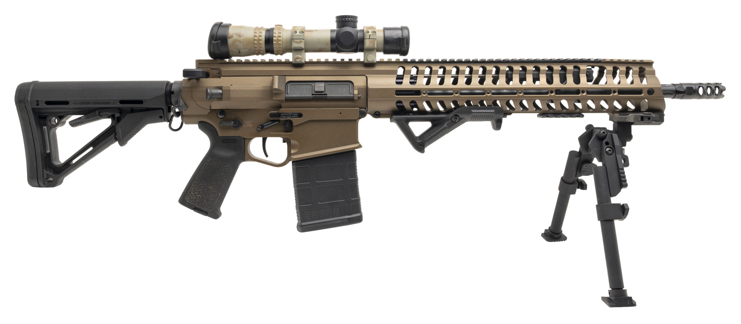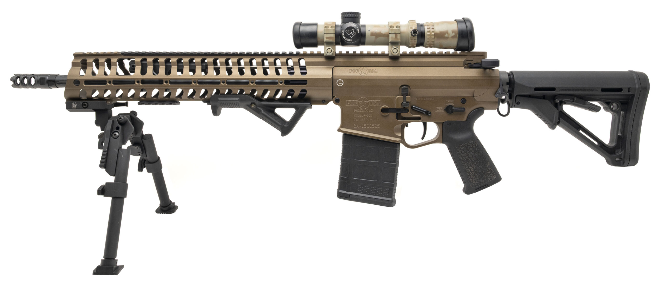 SN: BA-1500585. Modern production, 7.62 NATO with a 16" barrel w/3-port muzzle brake. Bore is bright with strong rifling. Semi-auto tactical rifle with a Nightforce NXS-1-4x24mm scope, GG&G bipod, Magpul angled grip, and full ambidextrous controls. Near excellent condition overall.