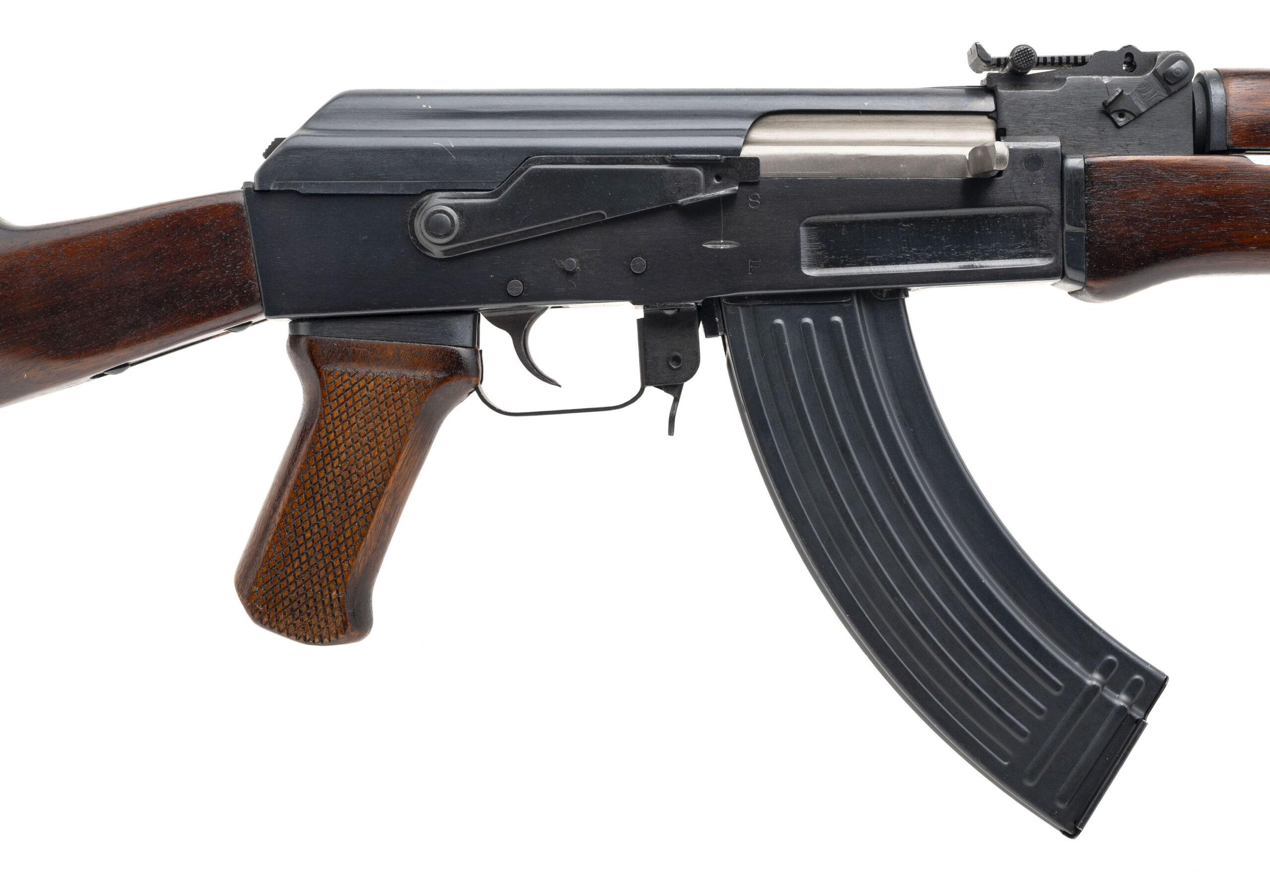 SN: P47-04913. 1988-1989 production, 7.62x39mm with a 16.5" chrome lined barrel. Bore is bright with strong rifling. Rare and Desirable Chinese AK rifle with a milled receiver and original wood furniture. Overall near excellent condition. Comes with Original factory box, two Chinese flat-back Polytech marked magazines, Type 2 bayonet w/sheath, sling, oiler & cleaning tools, manual, and Authenticity Certificate.