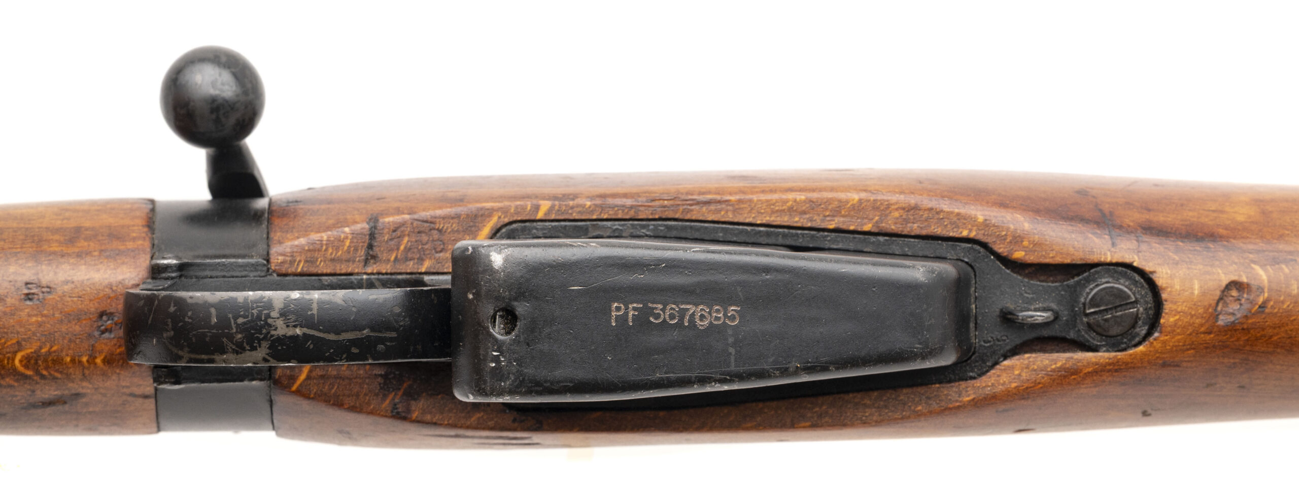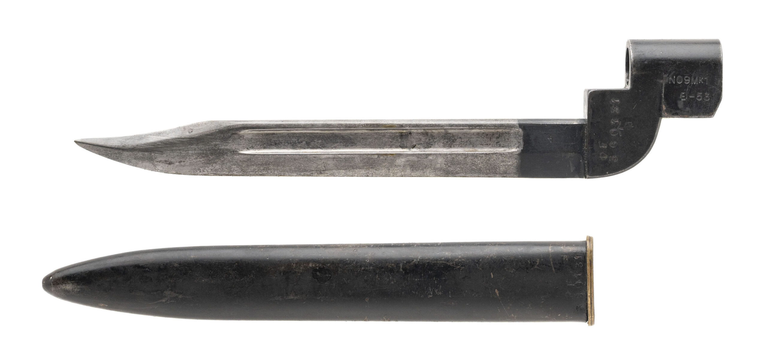 Serial No. PF367685, manufactured in 1953, chambered in .303 British with a 25" round barrel bearing an import mark. The bore is bright with strong, well-defined rifling. Serial numbers are matching throughout, including the magazine. Approximately 95–98% of the original finish remains, and the stock is in very good condition with only light handling impressions noted. Overall presentation is clean and well preserved. Action is smooth and functions correctly. The rifle is accompanied by a sling and a No.9 Mk.1 blade bayonet, completing a very attractive post-war No.4 Mk.2 package.