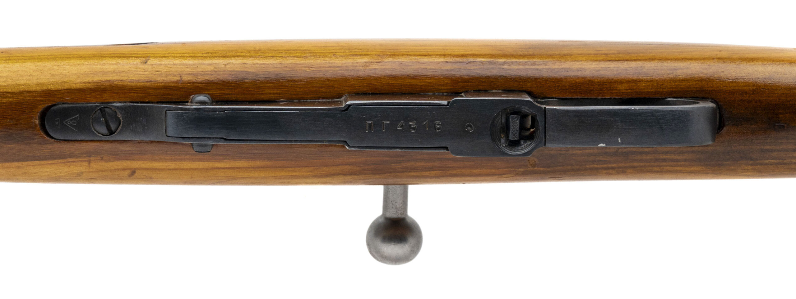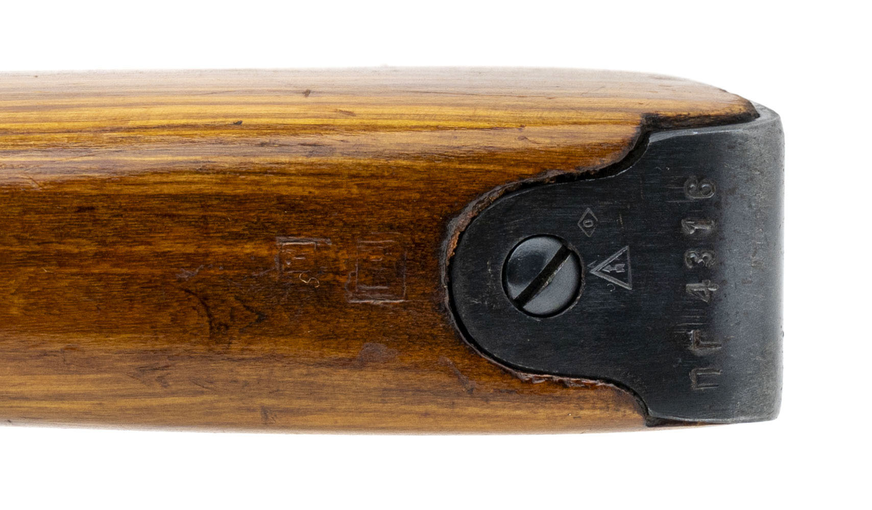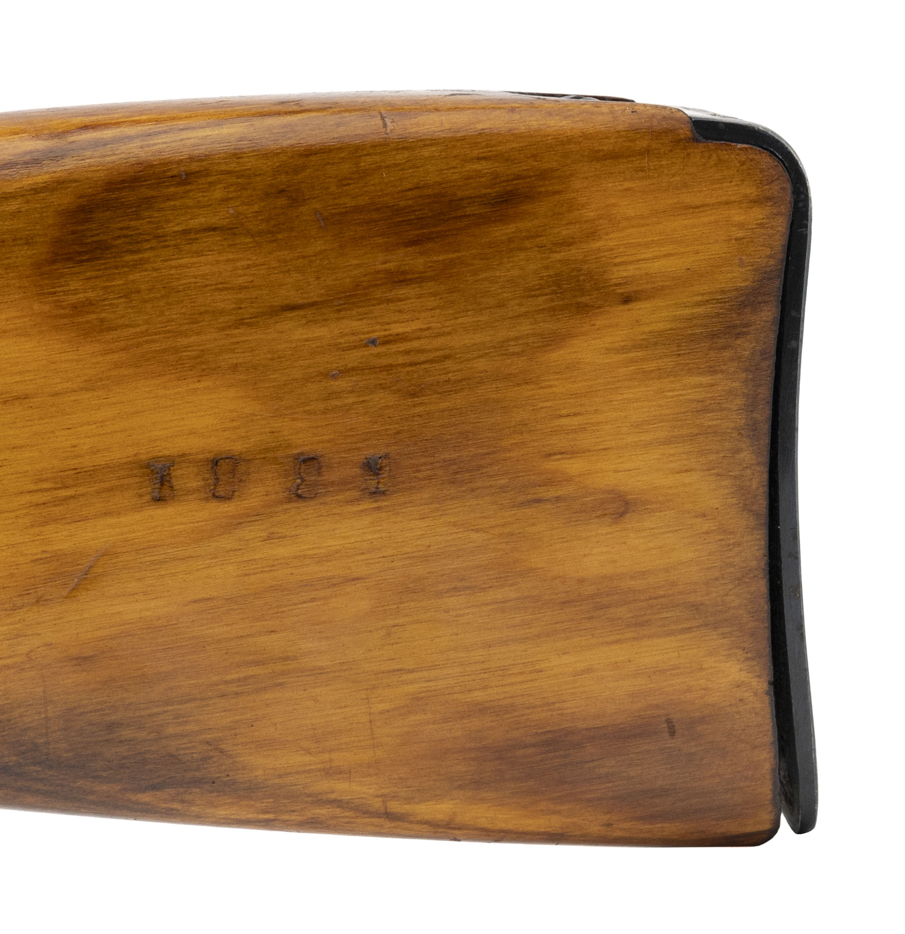 Serial No. M44037021, made in 1946 at Izhevsk Arsenal, 7.62x54R, 20 ½” round barrel. Original serial numbers are matching throughout. Right side of the receiver is import marked. Metal finish remains strong with signs of light use. Bayonet has been removed, as occasionally seen on reissued or exported examples. Stock is in very good condition, with only minimal handling impressions visible. Action is smooth and functions correctly. A solid post-war Soviet carbine reflecting the final years of Mosin-Nagant production before transitioning to newer platforms in the Cold War era.