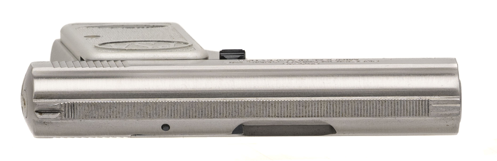 SN: 550369. Modern production, .25 ACP with a 2.13" barrel. Bore is excellent. Stainless alloy frame semi-auto pocket pistol with a manual thumb safety, and checkered alloy grips. Includes original box. Overall condition is excellent.