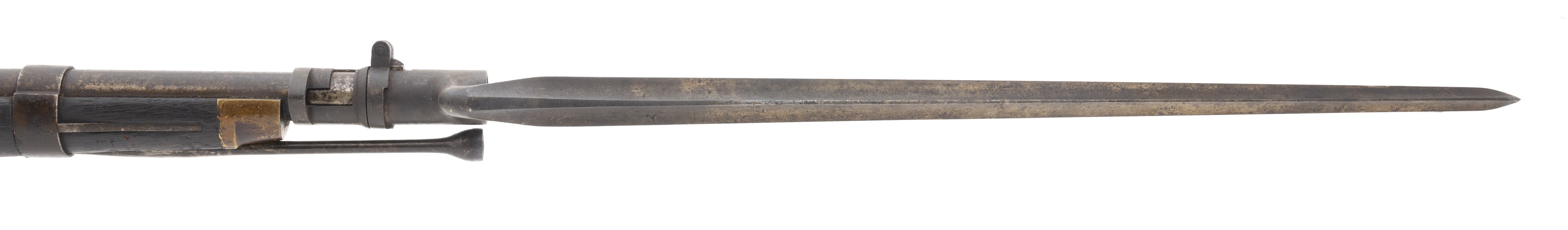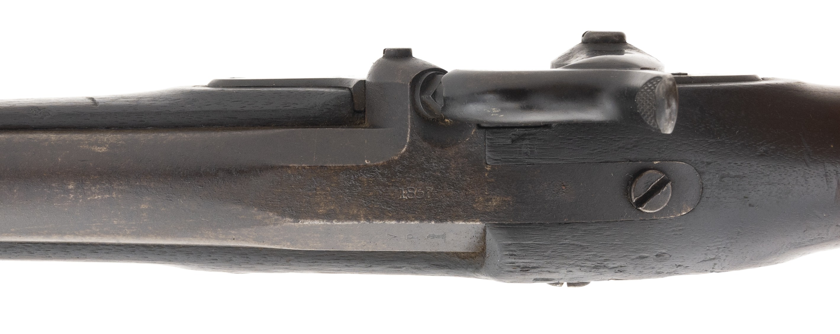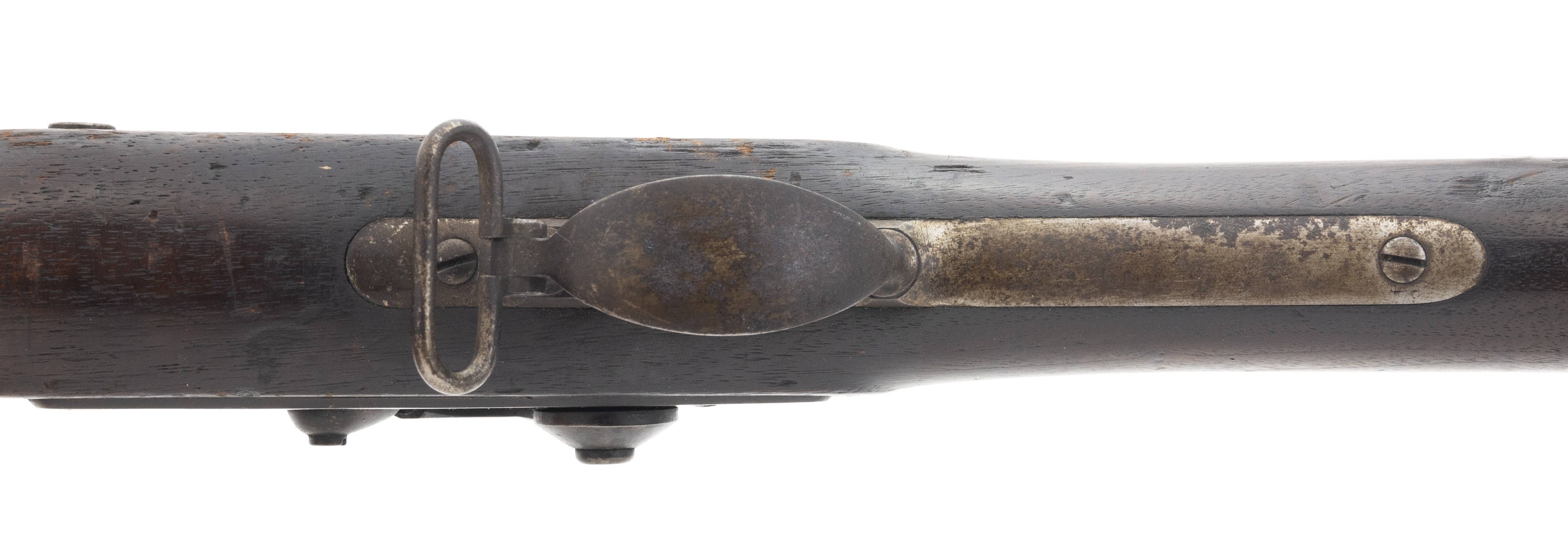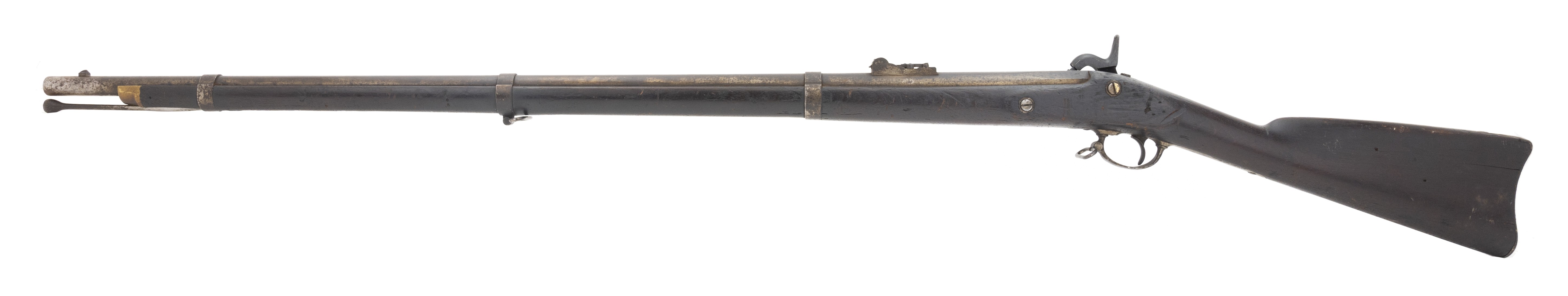 This percussion rifle musket is typical of Confederate Richmond Arsenal assembled guns during the Civil War. They will be found with a mix of Confederate and Union parts. With the exception of the lock which is marked C.S/RICHMOND, VA. and is dated 1863, the remainder of this rifle musket is a U.S. Model 1855. The 40" round 58 caliber barrel has an excellent bore with bright, strong rifling. It is dated 1857 and has V/P/eagle proofs. It is equipped with the Model 1855 long range sight which is graduated from 1 to 4. All the metal has a smooth brown patina. This rifle musket has one of the nicest looking Richmond locks we have seen. The stock is good with no cracks or chips and the expected dents and dings of an issued Civil War firearm. There are no cartouches. The swivels and ramrod are present. The action functions correctly. This rifle musket comes with a very good Model 1855 bayonet that has turned smooth brown. This Richmond lock rifle musket would be a great addition to a Confederate or Civil War collection.