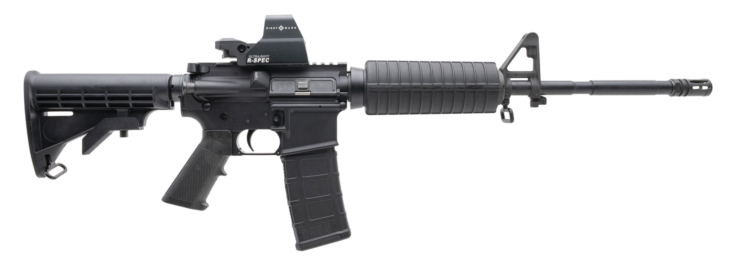 SN: SCB758553. Modern production, 5.56mm with a 16" barrel. Bore is bright with strong rifling. Semi-auto tactical rifle with a Sight Mark red dot optic and a front sight post. Overall condition is very good.