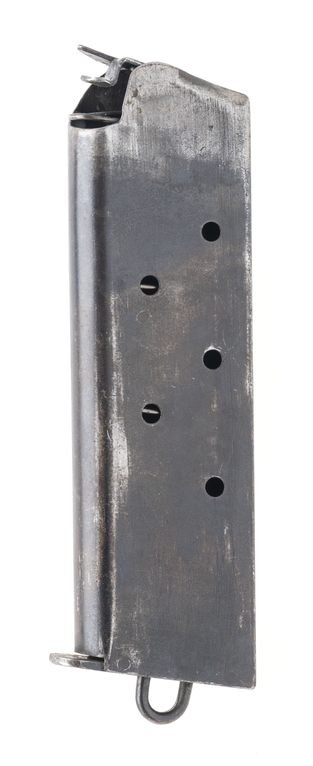 Rare two-tone .455 Eley magazine made for the British 1911 contract pistol. Magazine is in overall very good condition. Bottom of the magazine is marked "CAL-455/ELEY" .