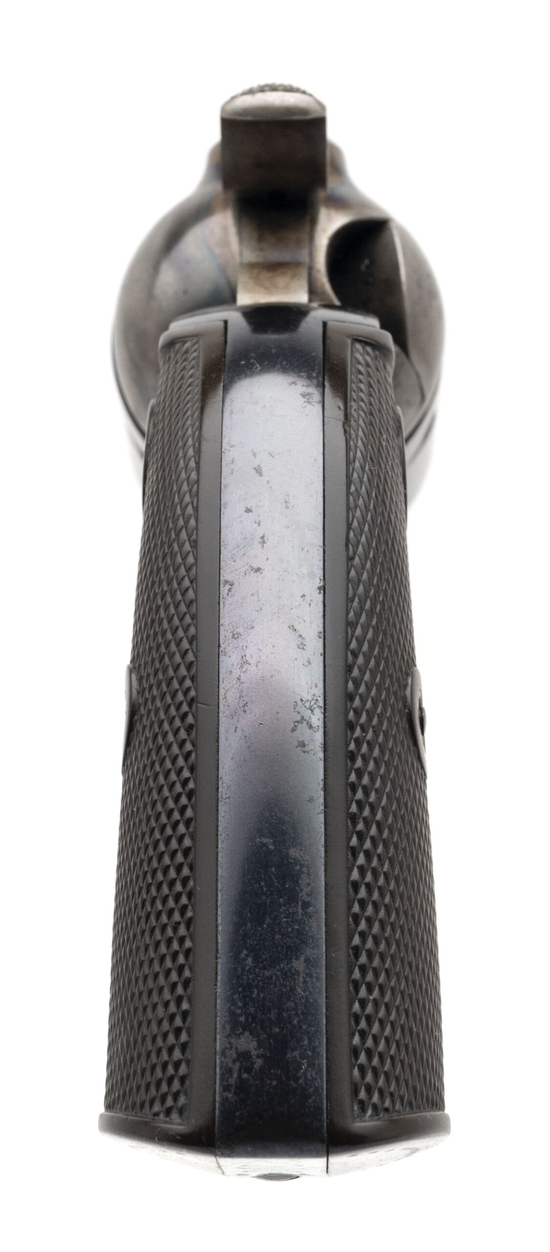 Serial number 280143. Made in 1906. 32 Colt caliber with a 7.5” barrel. This gun is in excellent condition with 95%+ of the factory quality blue finish on the barrel, trigger guard, back strap and cylinder. The frame has excellent original bright case colors. The grips are very fine. On the inside of the left hand side grip is the name “Doc Hammond/ Fredonia Ny” Charles “Doc” Hammond lived from 1869 – 1930 in Fredonia, Ny. The barrel has a excellent bore. This gun is in the rare caliber of 32 Colt. According to factory records, only 160 Bisley's were made in this caliber. This gun unfortunately is a no record gun. This sometimes happens with guns with special features.