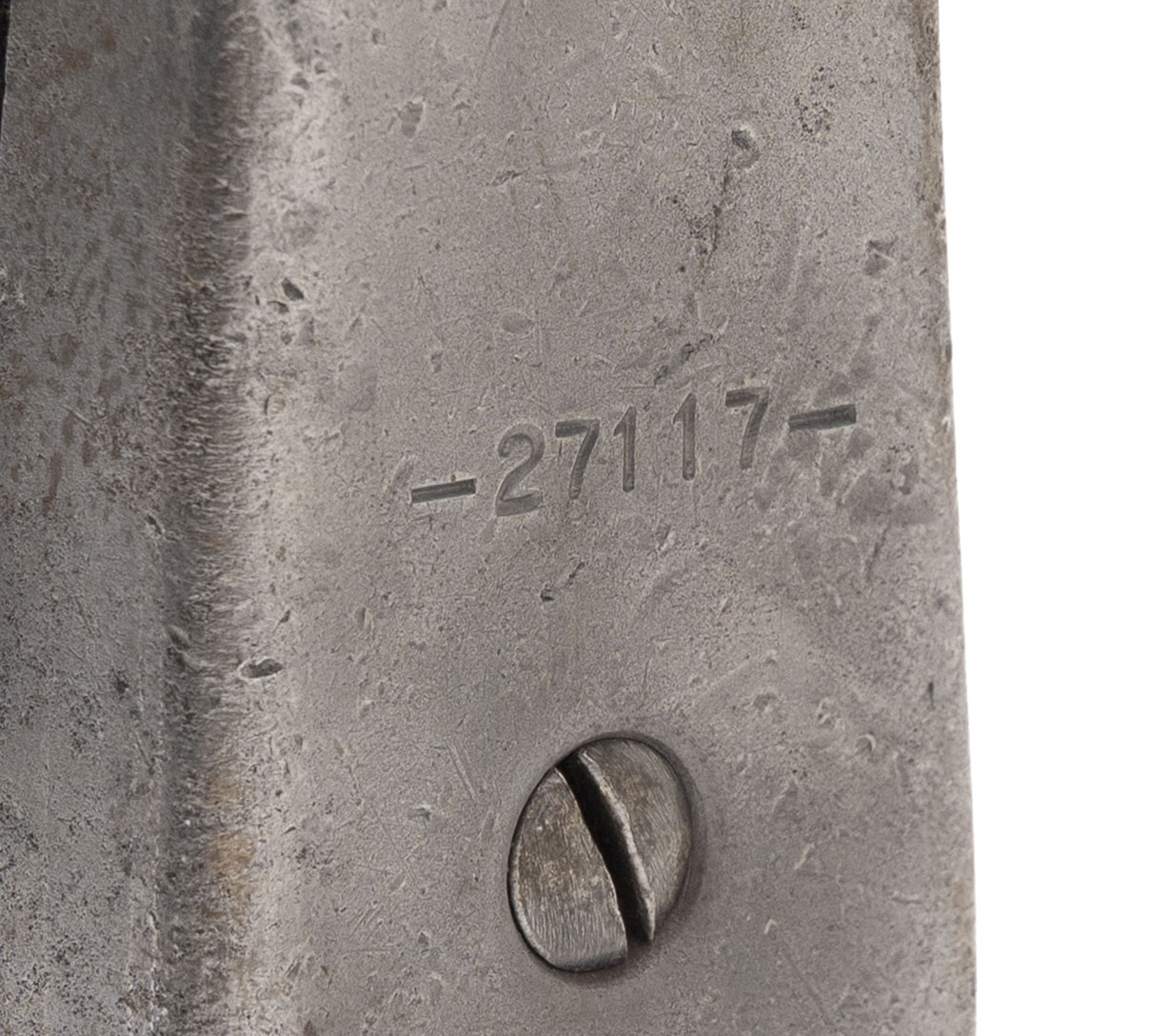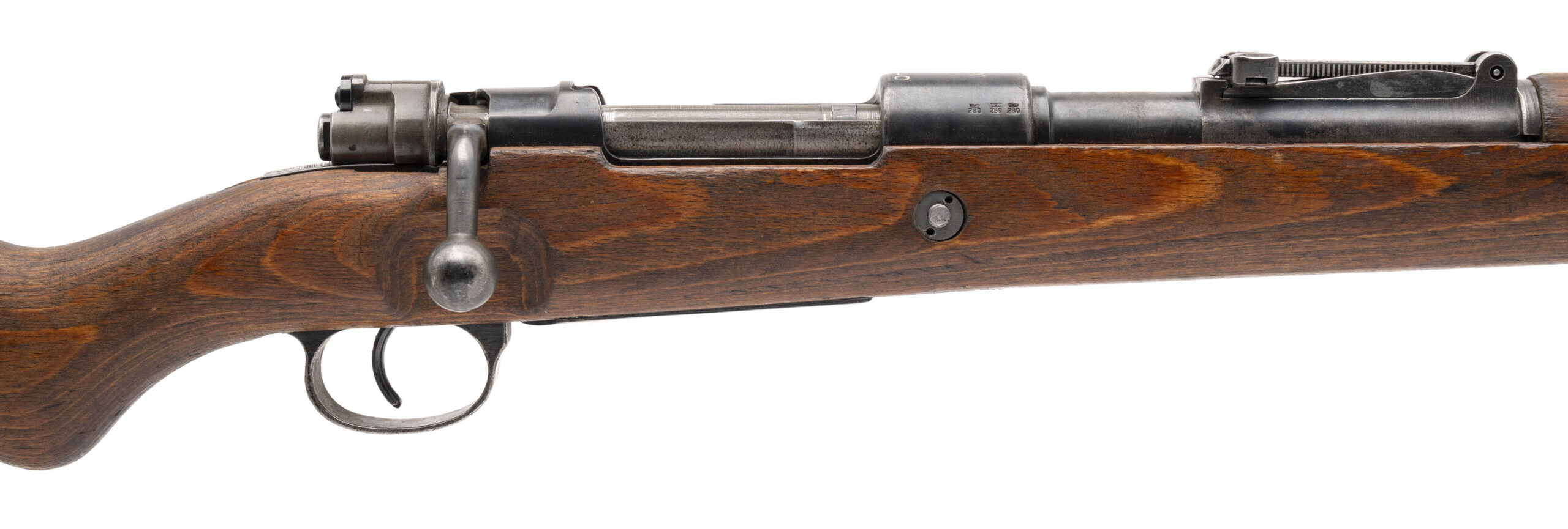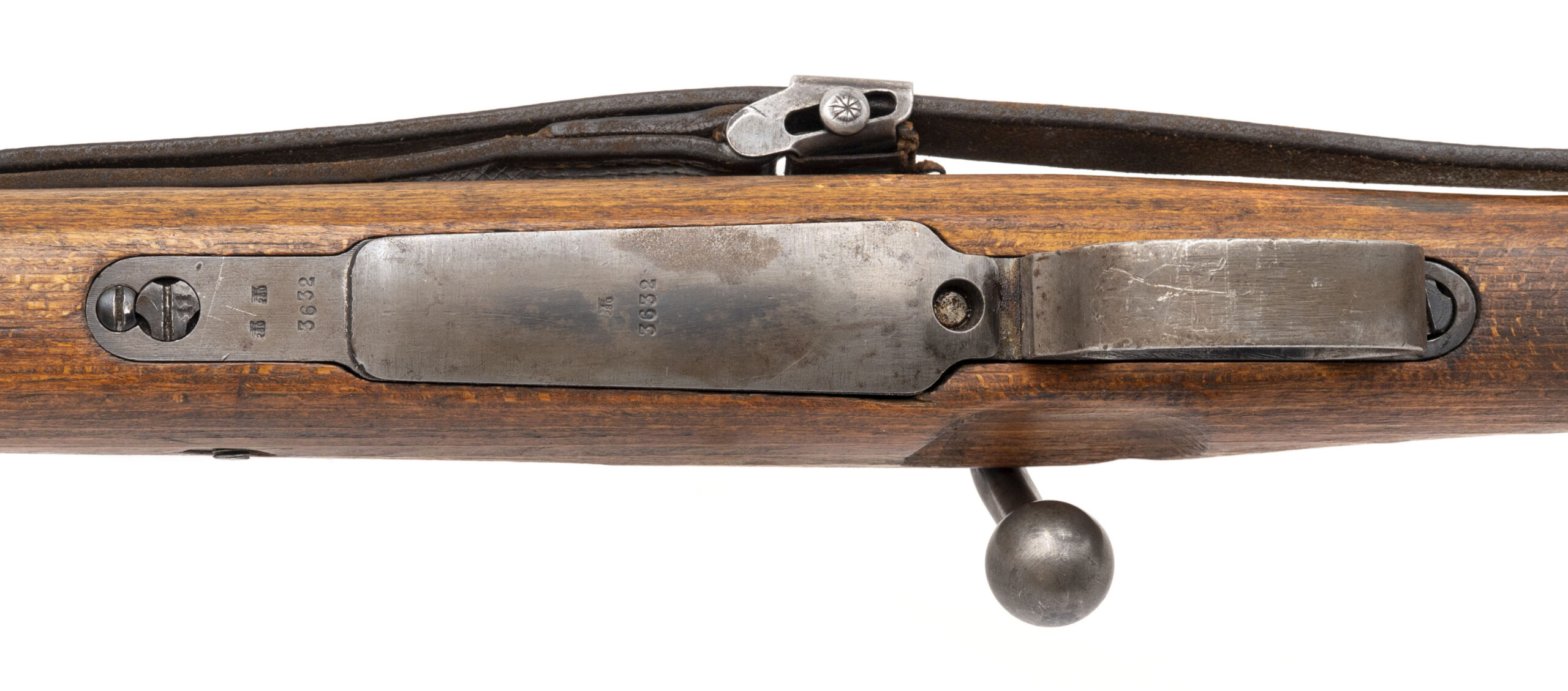 Serial No. 3632k, manufactured in 1940 by Erfurter Maschinenfabrik (ERMA) under the ordnance code “AX”, chambered in 8mm Mauser with a 24-inch round barrel. This rifle represents one of the rarest K98k production variants of the Second World War. The “AX” code was assigned to Erma for a brief production run in late 1940 through 1941, during which only an estimated 0.03% of all K98k rifles were produced at this facility. Production was soon discontinued as Erma shifted its full capacity toward the manufacture of the MP38 and MP40 submachine guns, leaving “AX”-coded rifles exceptionally scarce. All serial numbers are matching throughout. Metal surfaces have thinned to a smooth light grey patina, with factory markings and Waffenamt acceptance stamps remaining sharp and legible. The stock is very good, showing only light handling impressions consistent with limited-service use. Action is smooth and functions correctly. The rifle is accompanied by its original wartime sling.