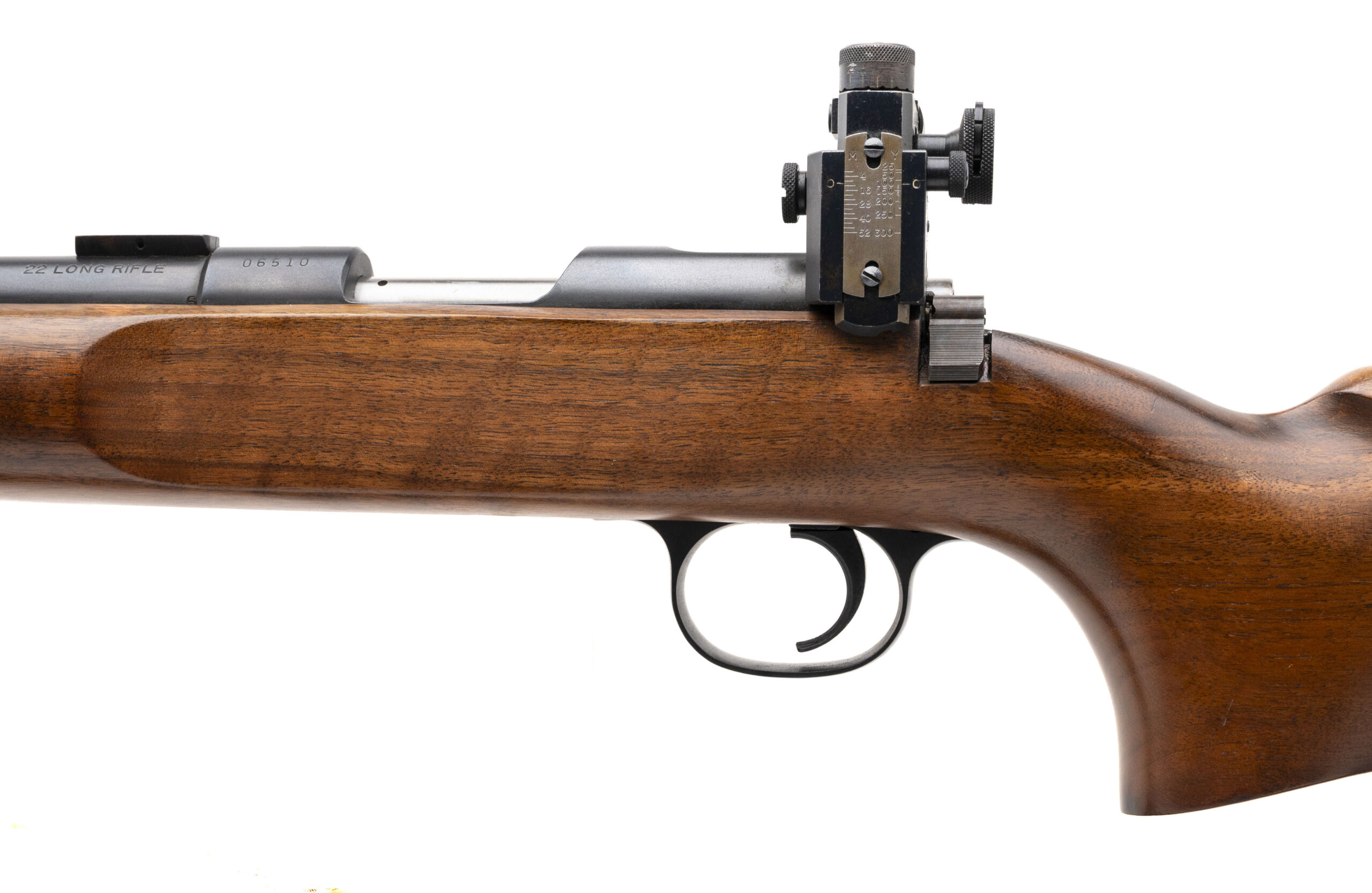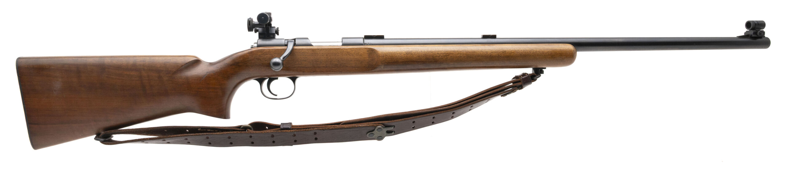 SN: 06510. Made in 1947, .22 LR with a 28" barrel. Bore is excellent. Heavy barrel target rifle with sights and scope blocks. The metal has been expertly refinished and looks great. Overall excellent condition. This gun doe NOT come with a magazine, sold as is. Comes with leather sling.