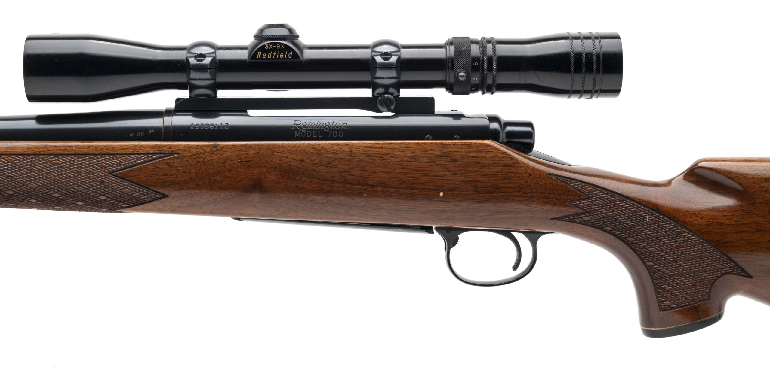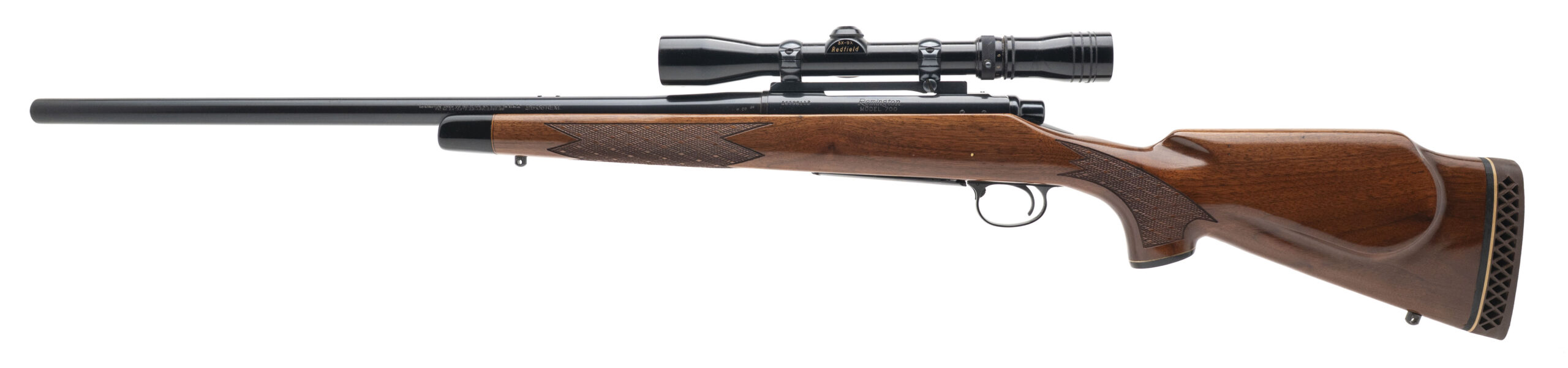SN: A6596112. 1970's vintage .25-06 with a 24" barrel. Deluxe varmint rifle with heavy barrel and BDL stock. Shows some wear and light speckling, overall very good condition. Has a Redfield 3x9 scope.