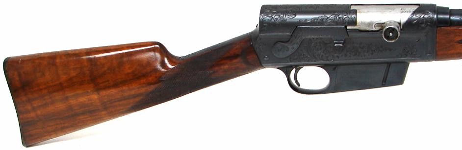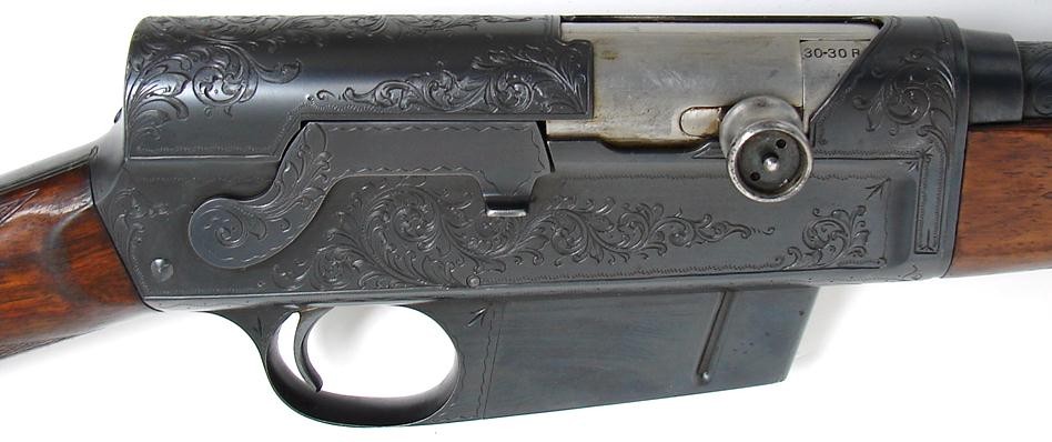 Remington 8 .30 Rem caliber rifle. Rare Peerless grade factory engraved with fancy wood. Early model marked 30-30R. Excellent condition. Pictured on pg. 62 of Henwoods book.