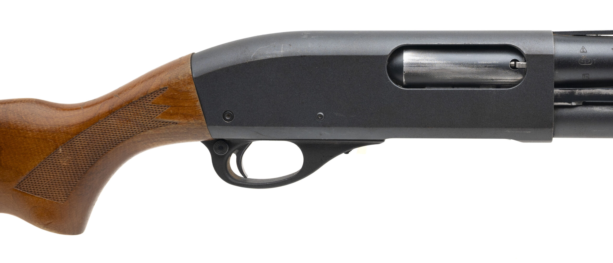 SN: B358749M. Made in 1995, 12 gauge with a 25.5" vent rib barrel w/removable mod. choke chambered for 2 3/4" & 3" shells. Bore is excellent. Pump-action field shotgun with parkerized finish, and checkered wood forend & stock with a 14" LOP. Finish & stock show wear with minor marks throughout. Overall condition very good.