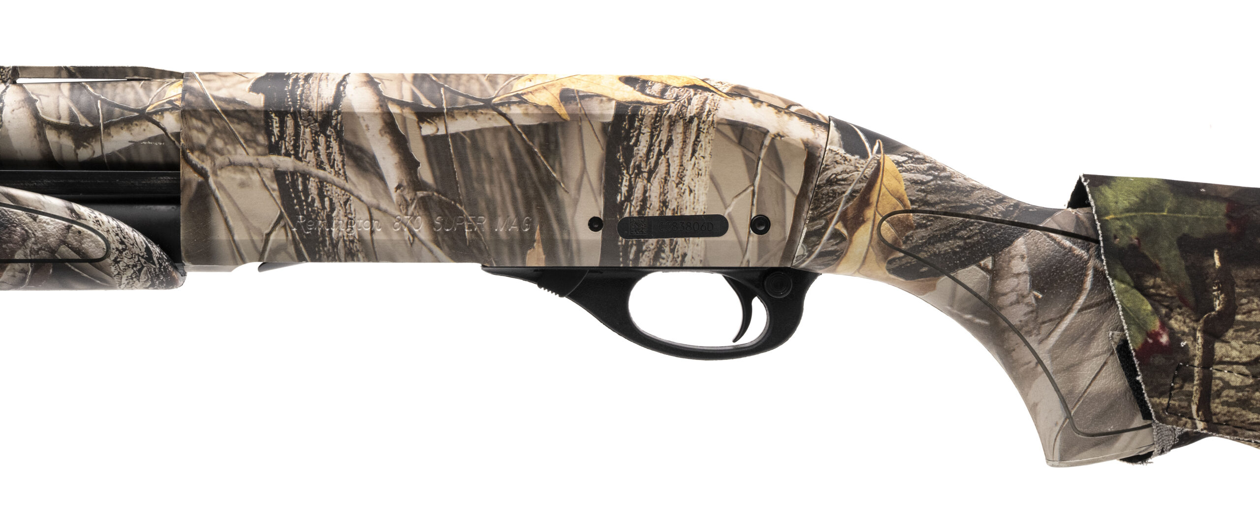 SN: CC83806D. Modern production, 12 gauge with a 25.5" barrel. Bore is excellent. Pump-action field shotgun with 14" LOP and chambered for 2 3/4" or 3" shells. Realtree camouflage finish and stock. Includes shell holder and sling. Overall condition is excellent.