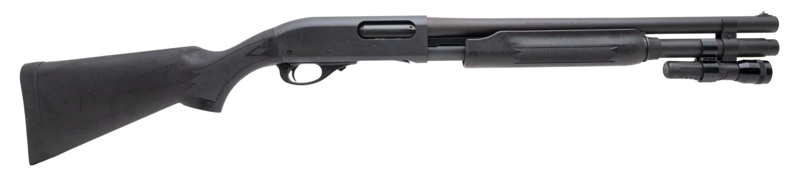 SN: AB129348M. Made in 2005, 12 Gauge with an 18" barrel. Bore is bright. Pump-Action, home defense shotgun with an flashlight mount and Streamlight Scorpion equipped. Finish is in very good condition with light wear along the receiver and barrel. Polymer stock and forend are in very good condition.
