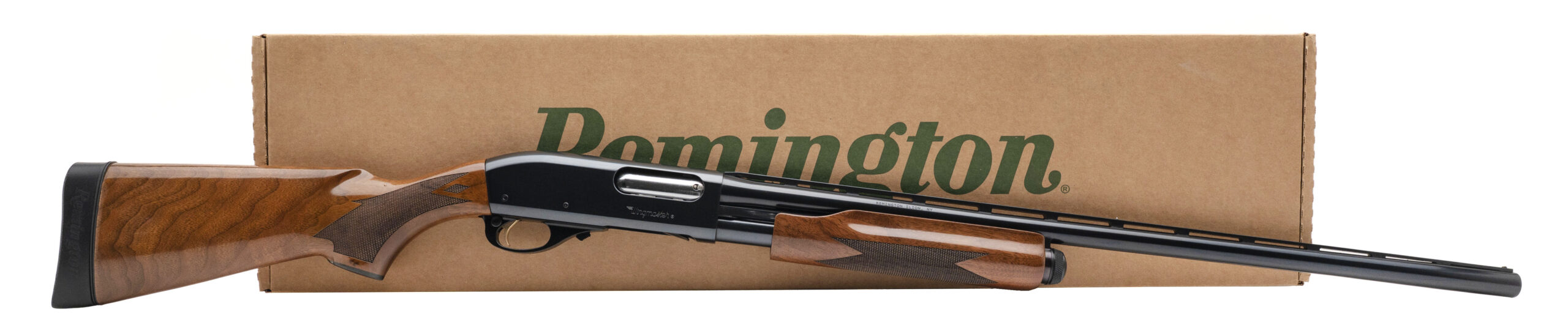 SN: RAS045662 modern production pump action 12 gauge shotgun with a 28” vent rib barrel with a screw in choke and 3” chamber. High polish blued metal and checkered walnut furniture with a gloss finish and 14.5” LOP to the original recoil pad. Overall condition is near excellent with an excellent bore.