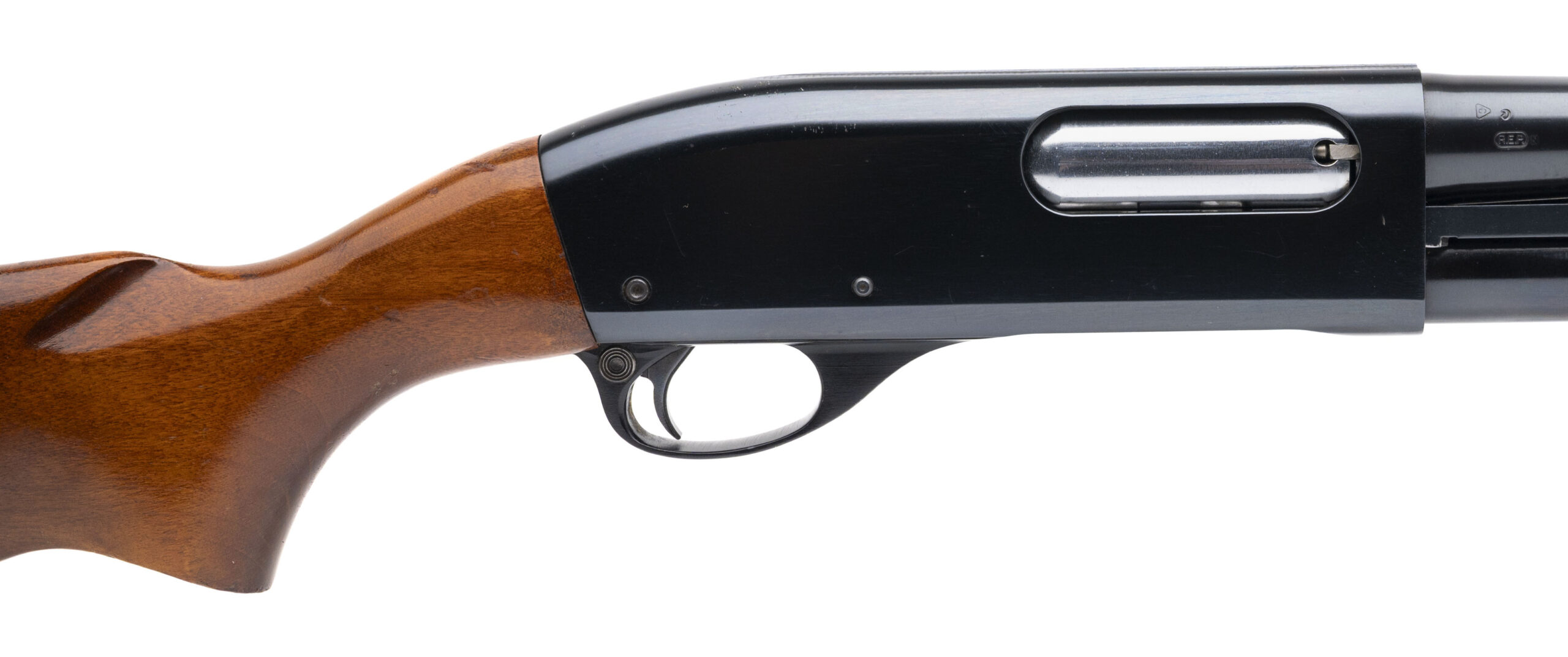 SN: V645856V. Made in 1955, 12 gauge with a 20" cyl. bore barrel chambered for 2 3/4" shells. Bore is excellent. Pump-action defense shotgun with blued finish, and wood stock & forend with a 14" LOP. Finish & stock show moderate handling marks throughout. Shell holder has been affixed to the buttstock via screws. Overall condition is good.