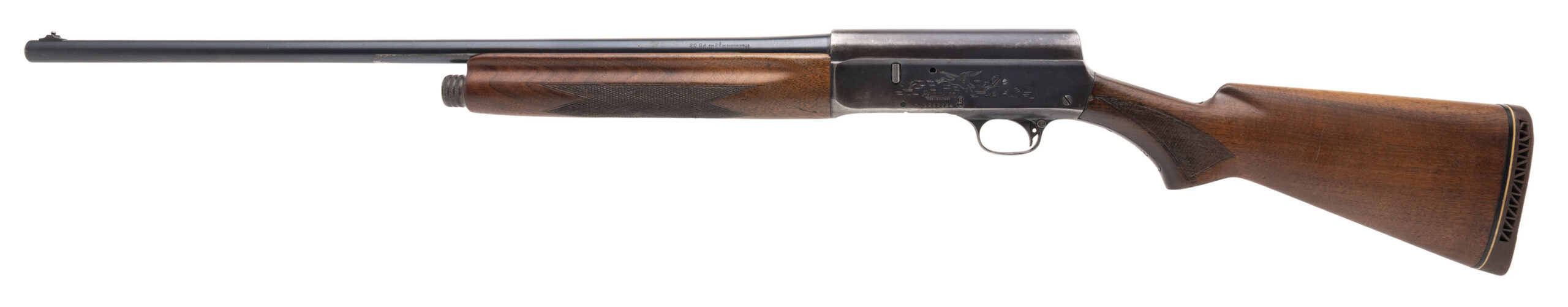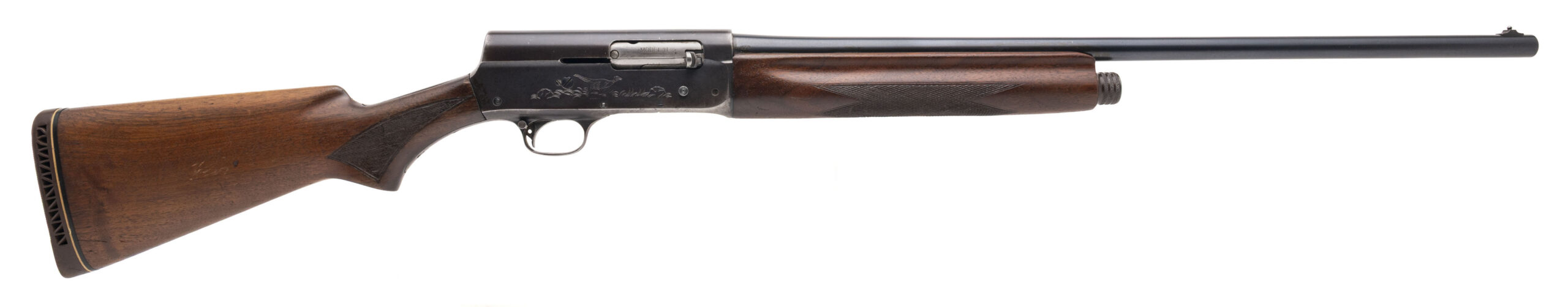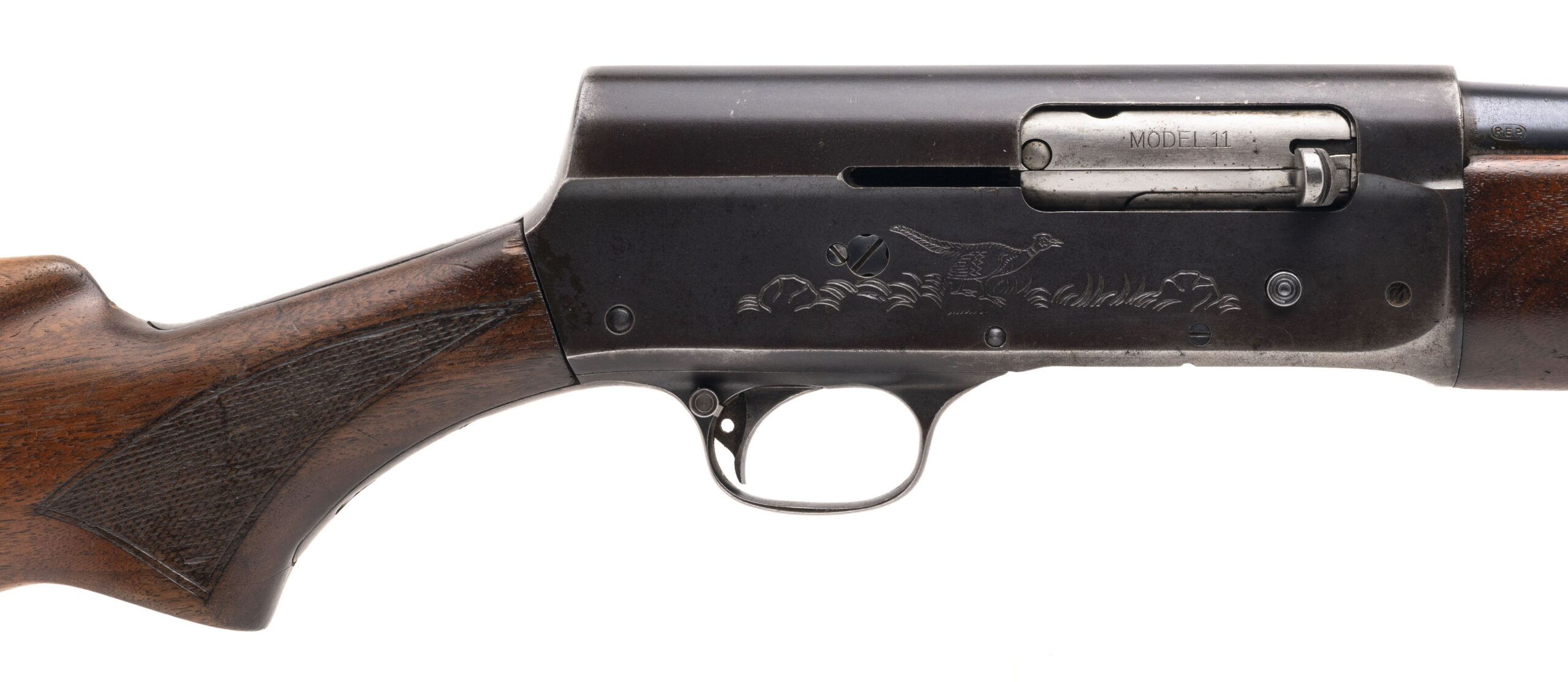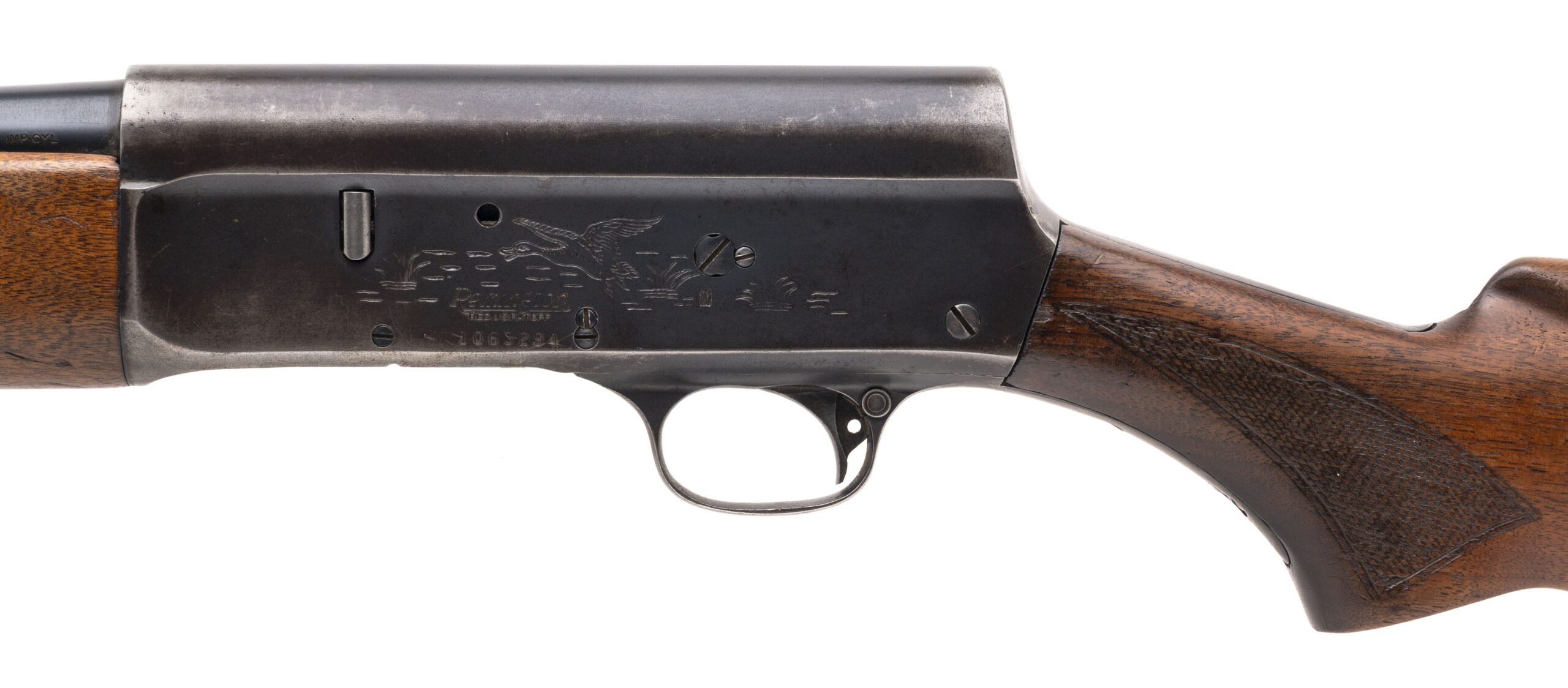 SN: 1063294, pre-war 20 gauge semi-auto shotgun with a 26" round barrel, 2 3/4" chamber and fixed IC choke. Blued metal finish that has faded to a grayish color on the receiver and has some wear on the barrel. Checkered walnut furniture with a 14" LOP to the Pachmayr recoil pad. Furniture has moderate wear and handling marks with a small chip on the right side of the headstock but no cracks or other damage. Bore is excellent, overall a good solid shooter.