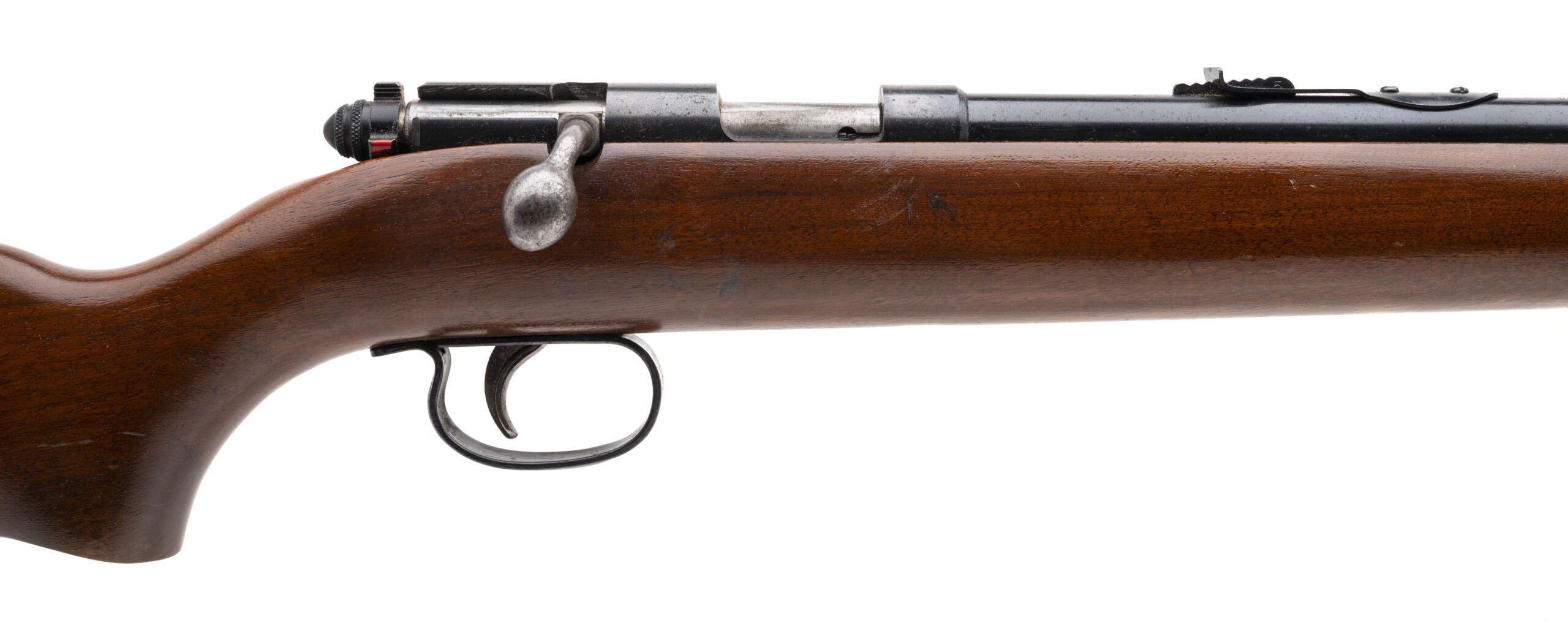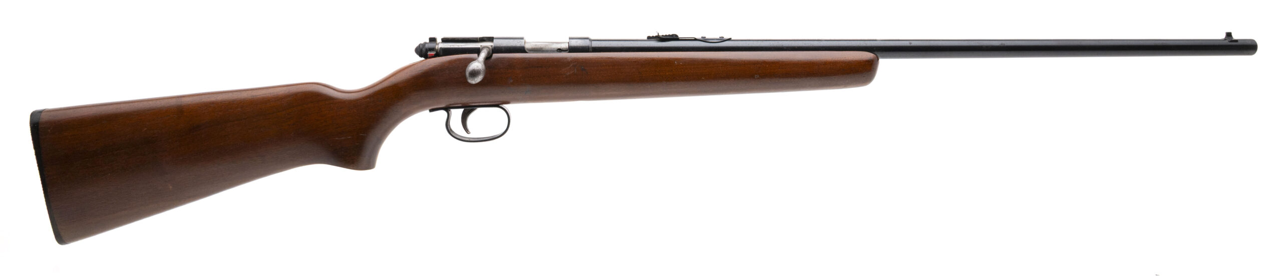 NSN made in 1959. Single shot 22 caliber bolt action rifle with a 24.75" round blued barrel with iron sights and a walnut stock with the original butt plate. Stock is in very good condition with minor handling marks, metal finish is good with some light speckling visible throughout and the bore is excellent.