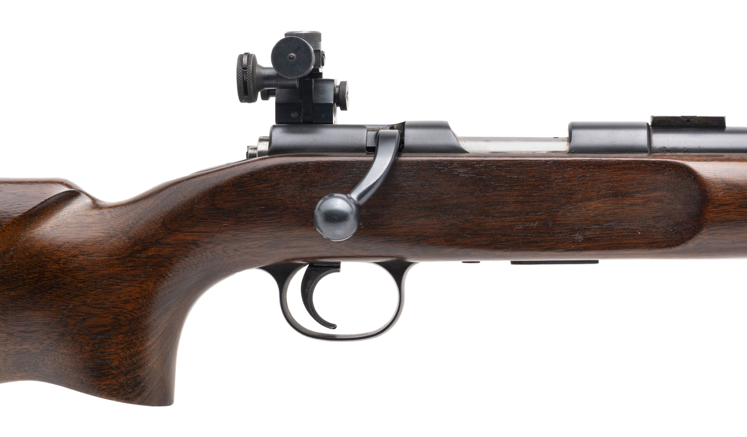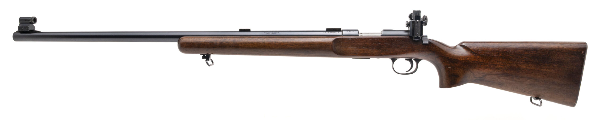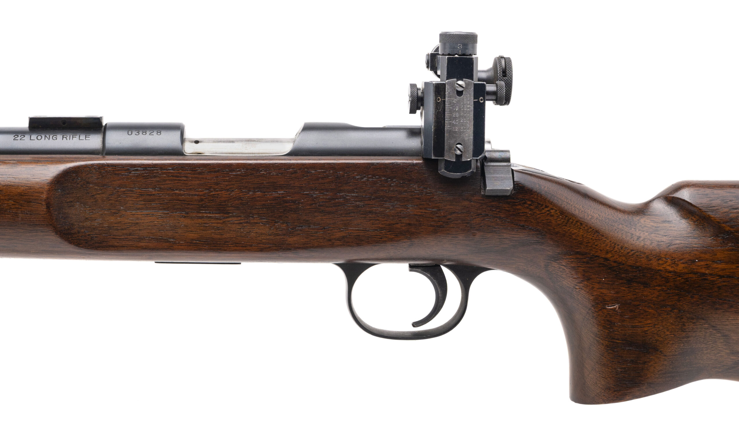 SN: 03828 made in 1941. 22lr bolt action target rifle with a 28" heavy profile round barrel, Remington micrometer receiver sight with selective aperture disk and a Lyman front globe sight with red disk insert and Unertl style scope bases mounted to the barrel and a detachable single shot magazine. Target style walnut stock with wide forend, adjustable front sling swivel, inlet rear sling swivel and checkered steel butt plate. Some light handling marks on the stock and 1 light scar from a repaired crack behind the bottom tang. Overall in very good condition with an excellent bore.
