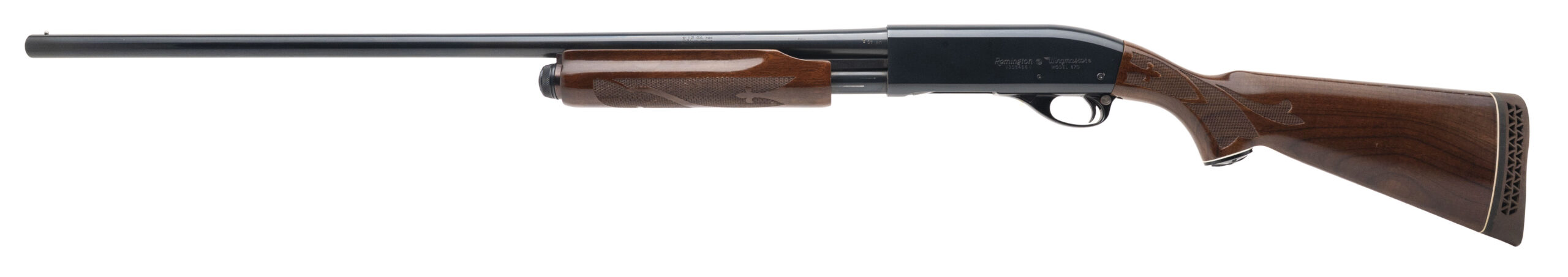 SN: V308456V. Made in 1979, 12 gauge with a 30" full bore round barrel chambered for 2 3/4" shells. Bore is excellent. Pump-action field shotgun with blued finish, and checkered wood stock & forend with a 14" LOP. Finish & stock show minor handling marks. Overall condition is very good.