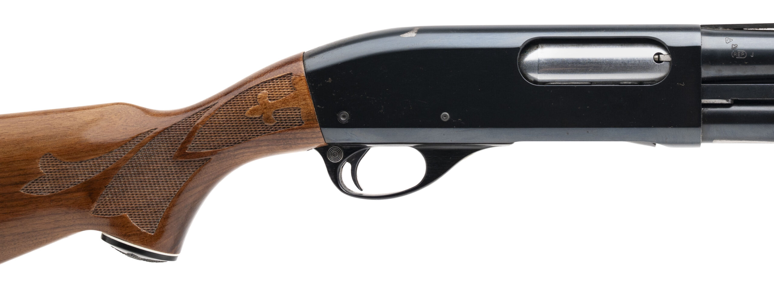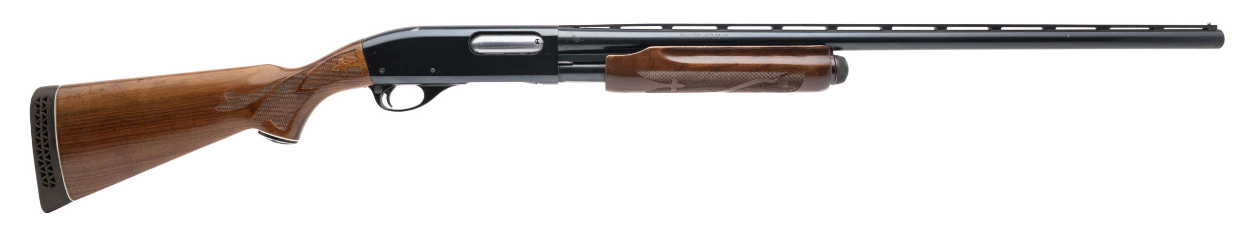 SN: V944825V. Made in 1983, 12 gauge with a 28" vent rib mod. bore barrel chambered for 2 3/4" shells. Bore is excellent. Pump-action field shotgun with blued finish, and checkered wood stock & forend with a 14" LOP. Finish & stock show wear with minor handling marks throughout. Overall condition is very good.