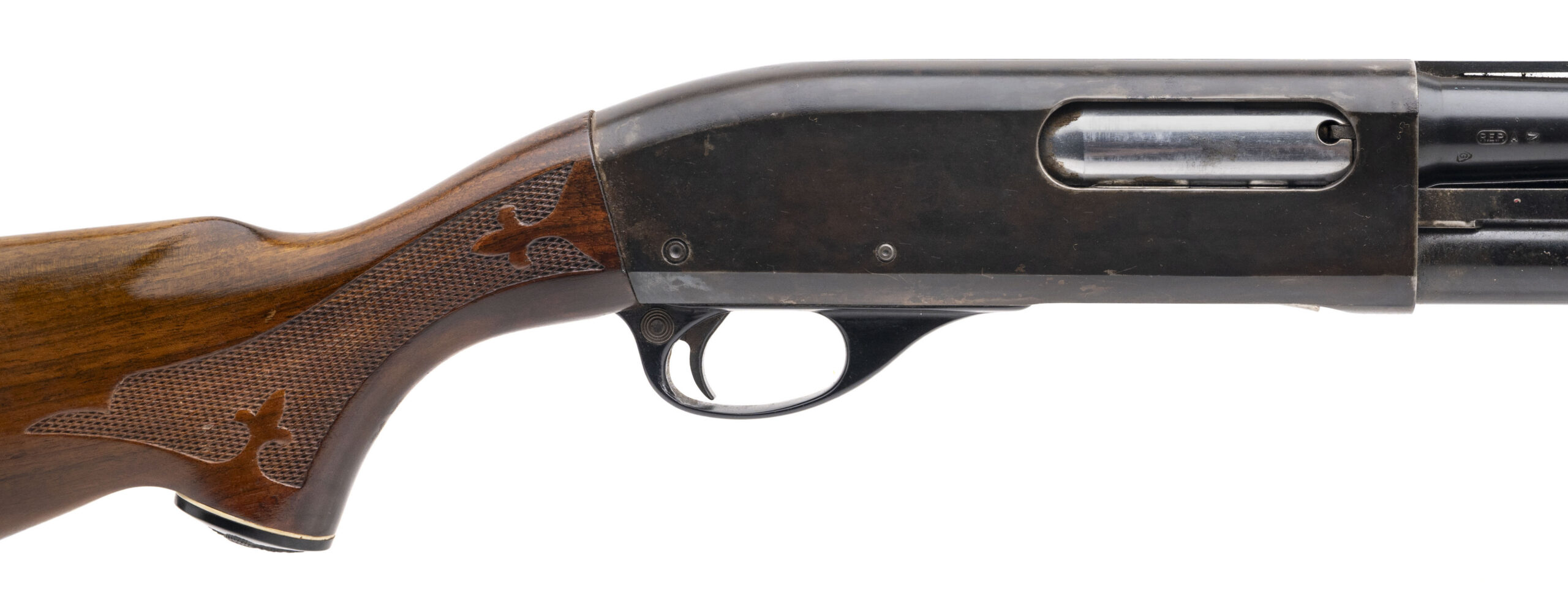 SN: S481602X made in 1971. 20 gauge pump action field shotgun with a 28" vent rib barrel, 2 3/4" chamber and fixed mod choke. Checkered walnut furniture with a 13.75" LOP to the original pad. Furniture is in good condition with some light handling marks, metal finish is fair, receiver has been cold blue and is somewhat blotchy, barrel has some small areas of light pitting on the rib and 1 small spot on the right side of the barrel but the bore is excellent. Overall a good solid shooter.