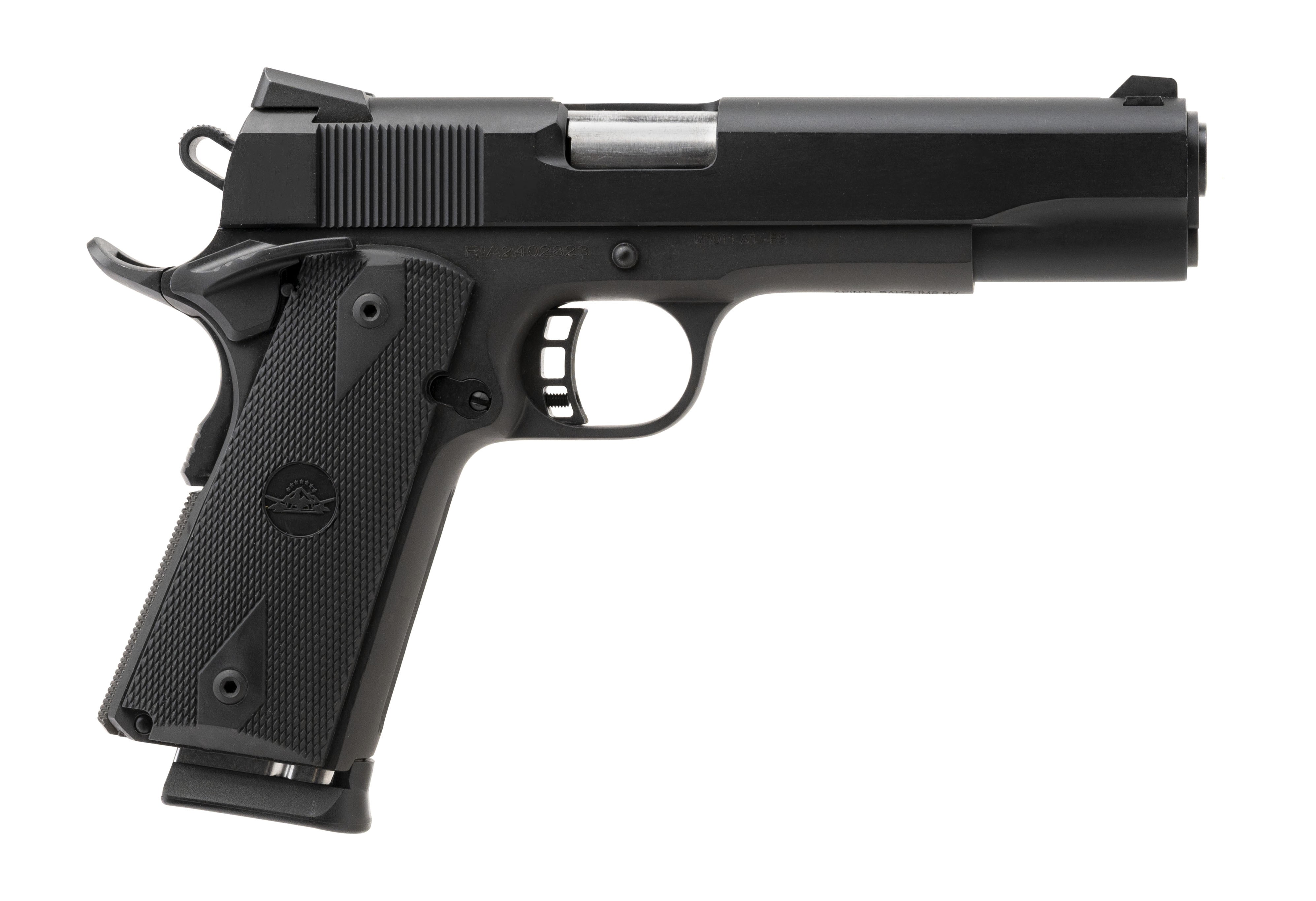 Full size 5" barrel, black rubber grips, ambi thumb safety, fixed sights, and comes in a Parkerized finish. NEW. UPC: 4806015516323