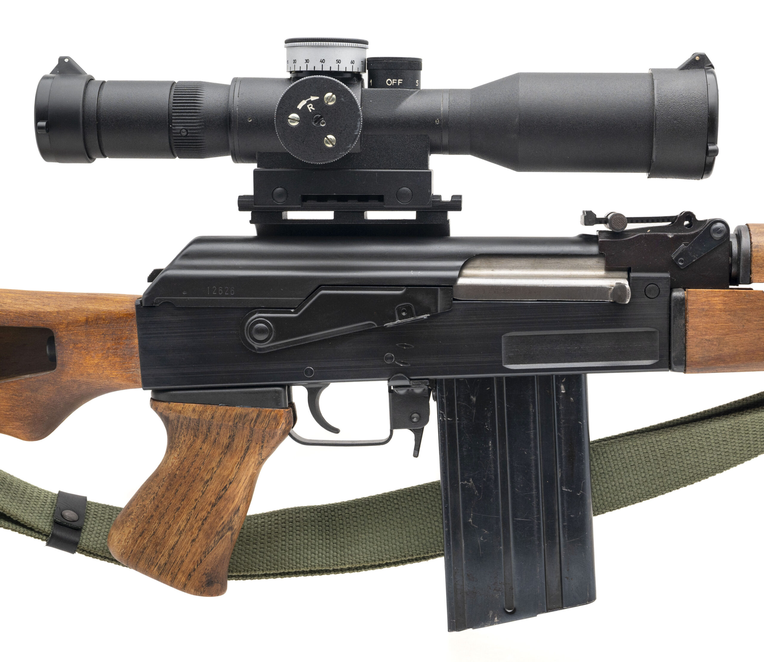 SN: Y00737. Modern production. Semi-auto rifle chambered in .308 Winchester with an 18" barrel. Overall condition is excellent. Has a BelOMO 8x42 WD M6 PRO rifle scope mounted with an Arbalet M-59 side rail mount. Comes with three magazines.