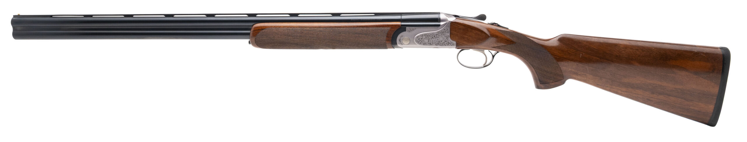SN: 116208. Modern production, 20 gauge with 28" vent rib barrel w/removable chokes chambered for 3" magnum shells. Bores are excellent. Over/under field shotgun with engraved stainless steel receiver, blue finished barrels, and checkered wood stock & forend with a 14.75" LOP. Finish & stock show light handling marks. Includes additional chokes, and original case. Overall condition is very good.