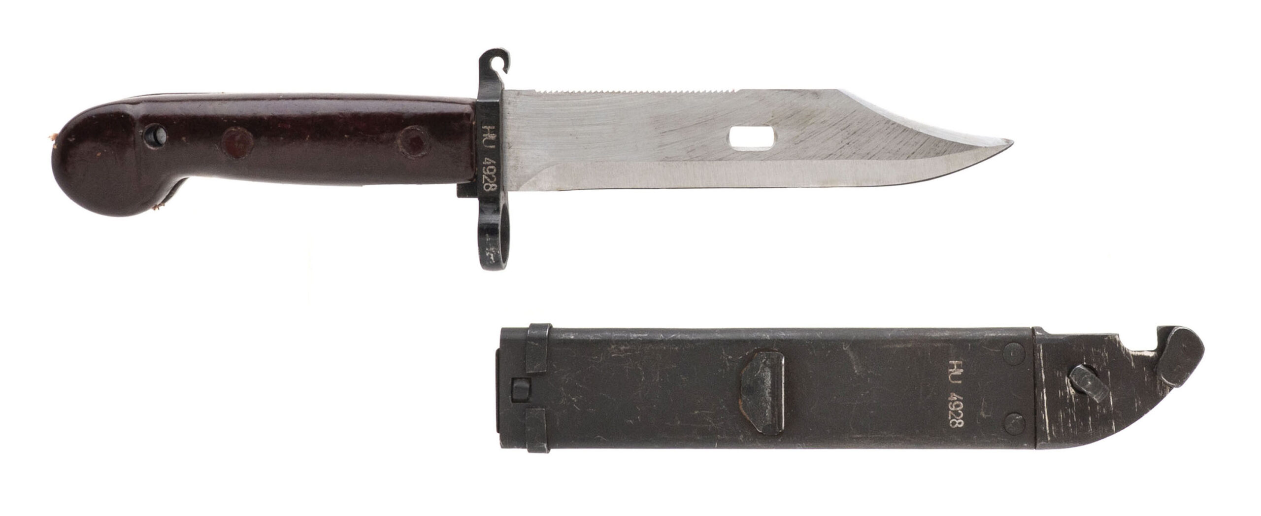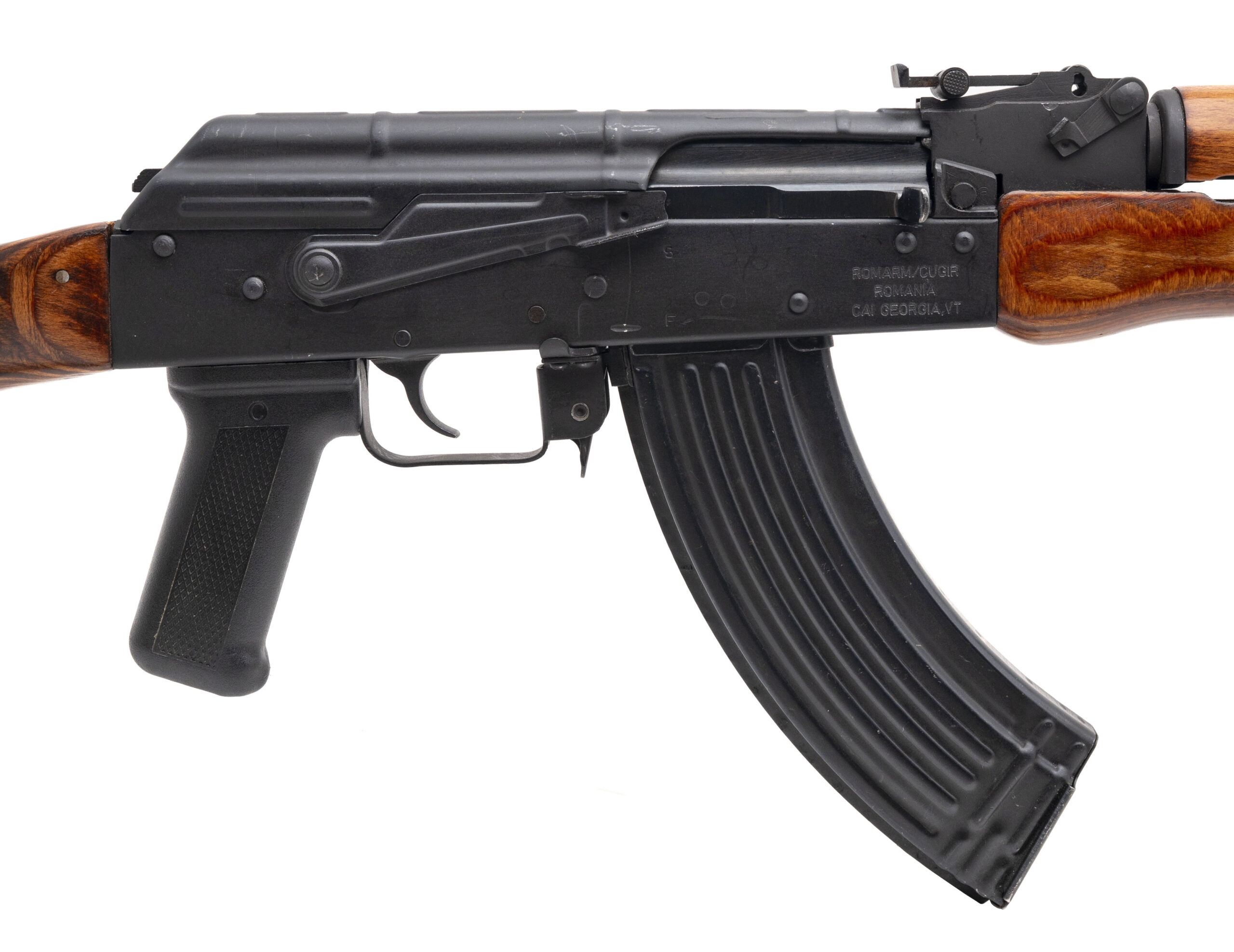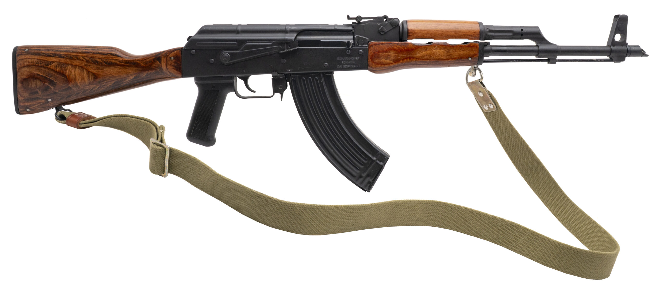 SN: 1972EB0151. Modern production, 7.62x39mm with a 16" barrel. Bore is bright with strong rifling. Romanian AK rifle equipped with an Romanian bayonet & green sling. Metal shows wear but the overall condition is very good.