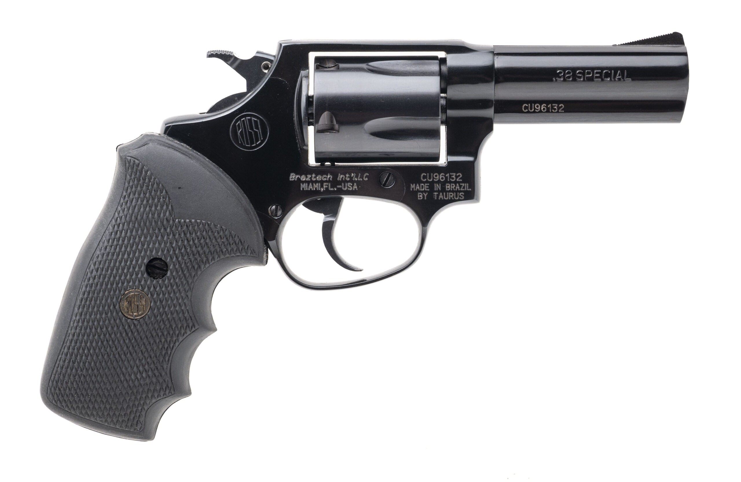 SN: CU96132. Modern production, .38 Special with a 3" barrel. Bore is very good. Brazilian made double action revolver with rubber grips. Very good condition overall.