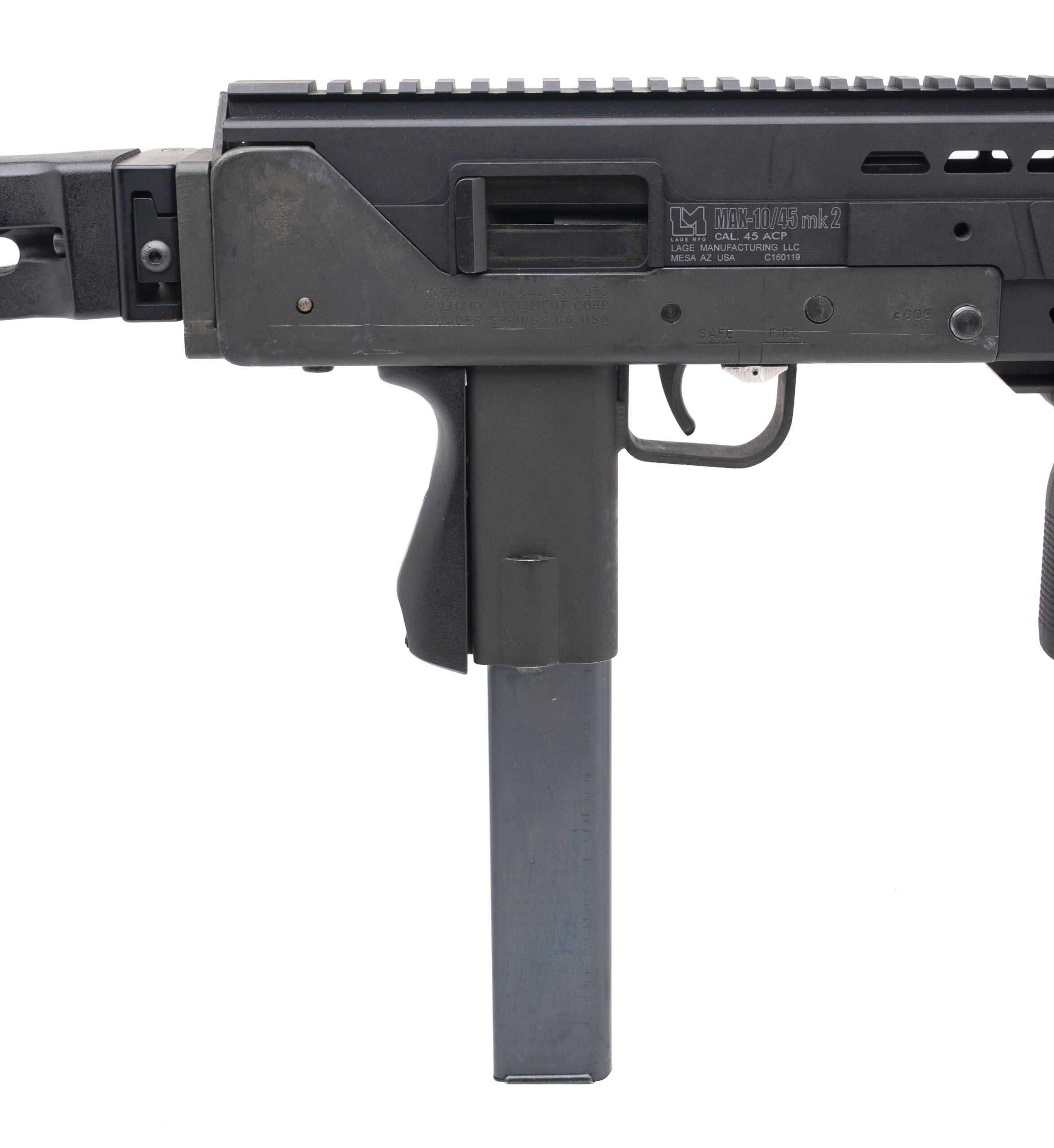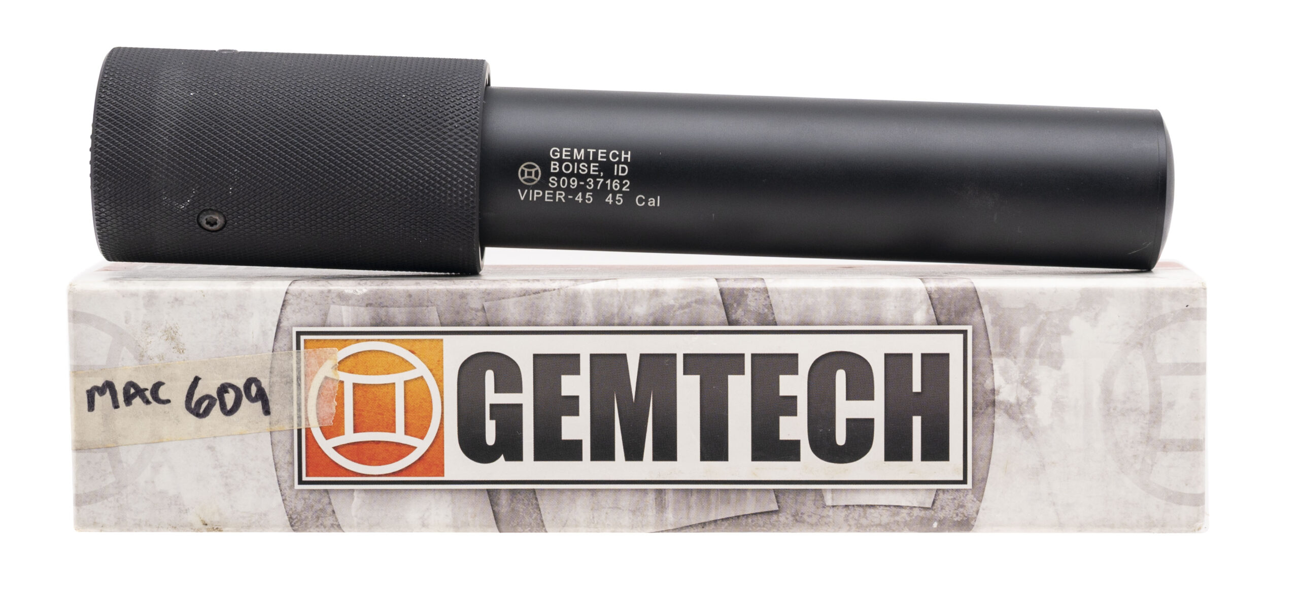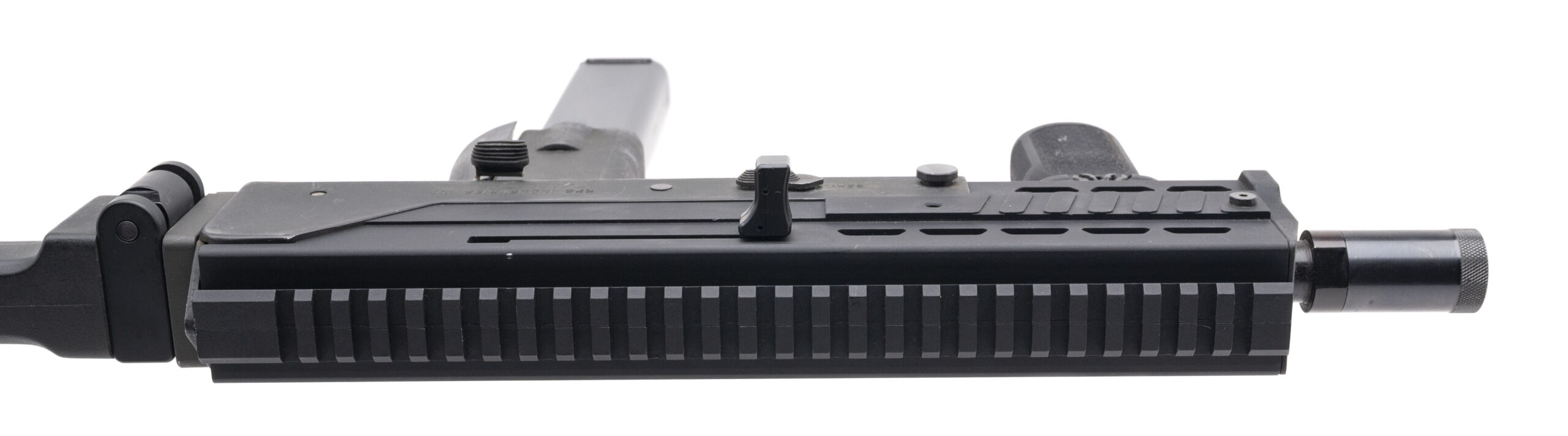 Serial number C609. This is a "double stamp" MAC-10 SMG which means that the unfinished receiver was originally manufactured by Military Armaments Corporation in Powder Springs, Georgia before it went out of business in 1977 but then it was completed as a Title 2 machine gun by RPB Industries in Atlanta in 1978 & registered as a fully transferable NFA item. Gun is currently equipped with a black polymer folding buttstock & an extended magazine release. Comes with three LAGE Manufacturing LLC uppers: a MAX-10/45 mk1 in .45 ACP that is equipped with adjustable front & rear sights, a MAX-10/45 mk2 in .45 ACP with full toprail & MAX 10/9 mk2 in 9mm Luger with full toprail. Three steel .45 ACP magazines & three steel 9mm magazines with a magazine adapter are included in the group. Also comes with a 10-inch wipeless GEMTECH Viper-45 suppressor (sn S09-37162), which is rated for full auto fire. It is built with CNC machined aluminum baffles & a domed front end cap that presents an appearance generally resembling the suppressor used on early MAC-10 SMGs back in the 1970s. Overall condition is used but excellent with original black hardcoat anodized finish that remains in great shape. Comes with operating & maintenance manual. ALL NFA RULES APPLY
