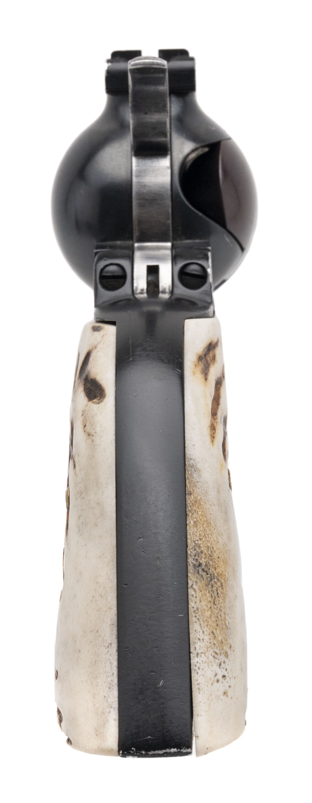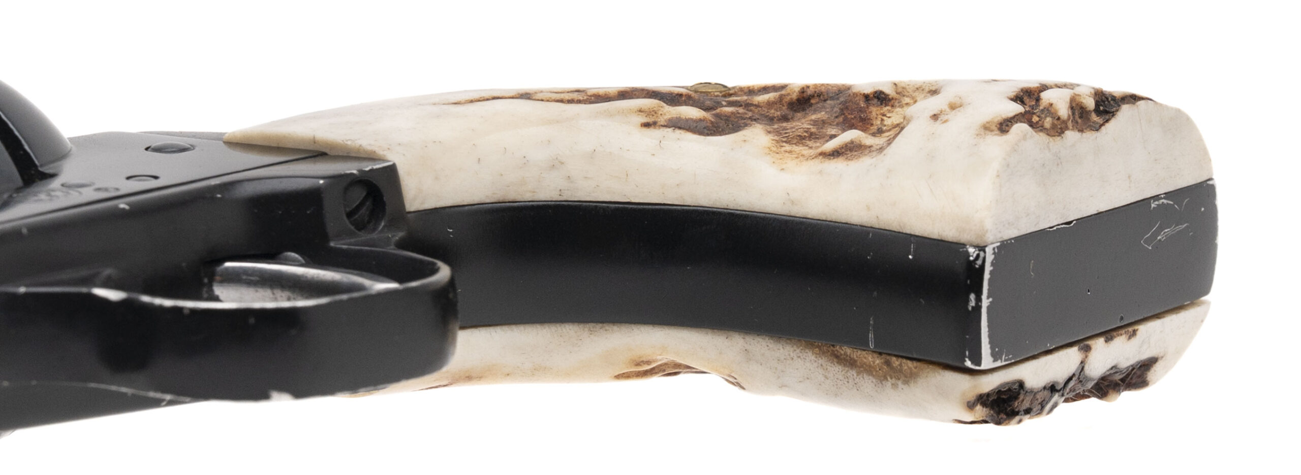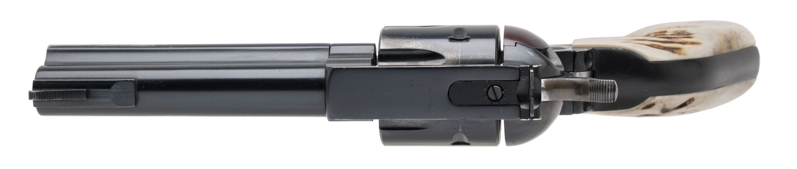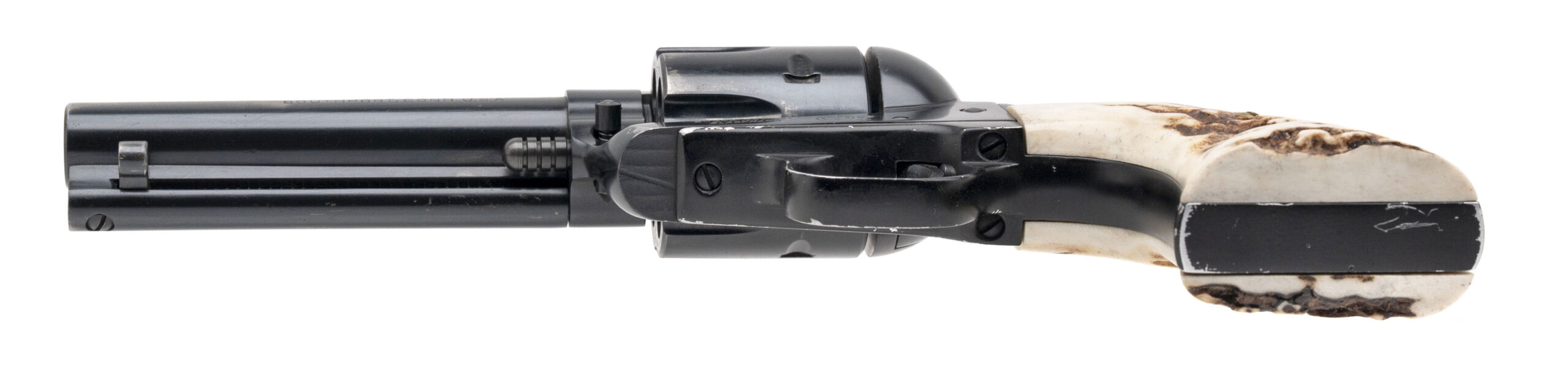 SN: 18332. Made in 1958, .357 Mag with a 4.625" barrel. Original 3-screw Flattop single action. Has about 90% original blue with some carry wear. Has not been altered for transfer bar safety. The grips are beautiful genuine stag. A classic Ruger sixgun.