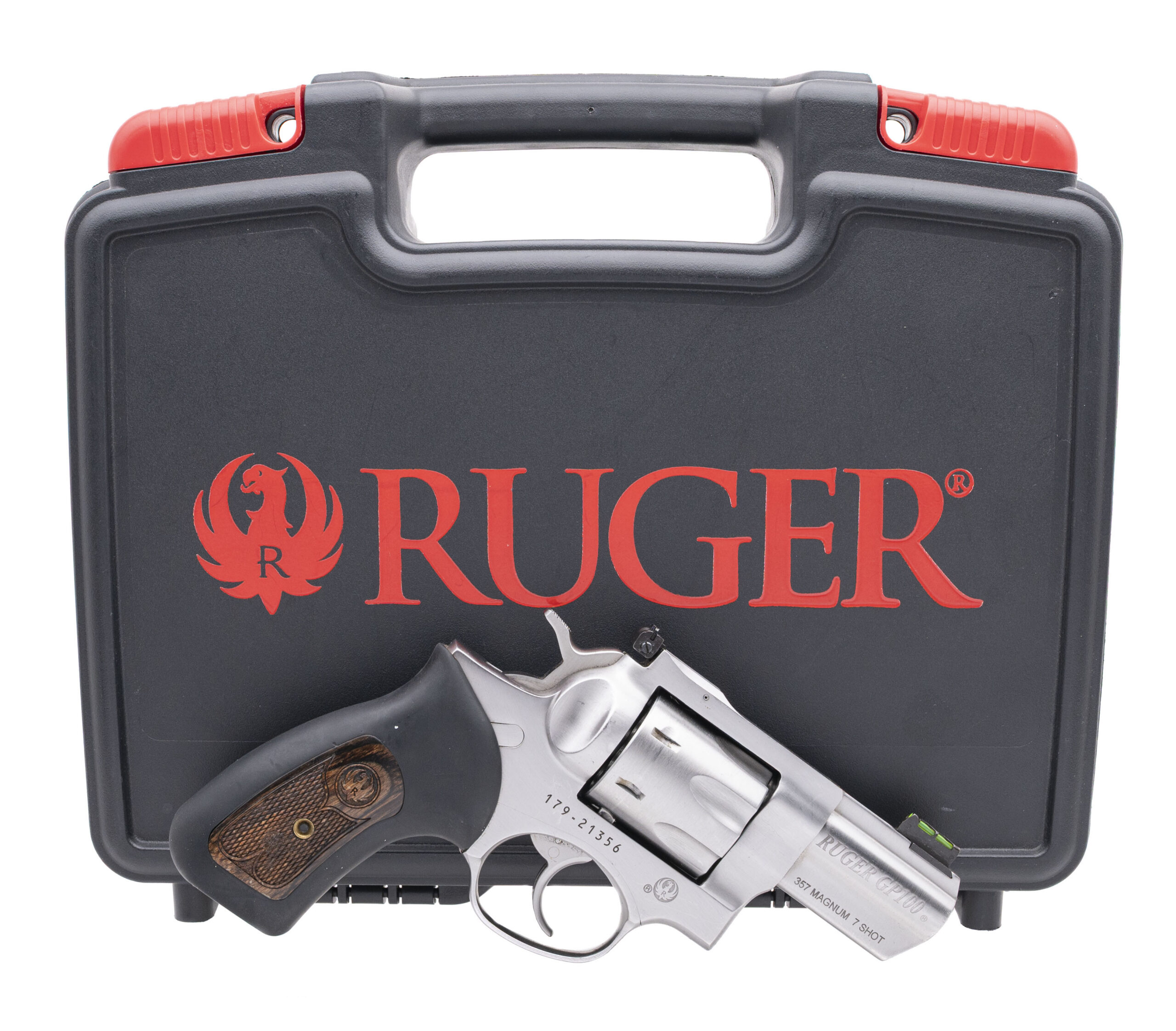 SN: 179-21356. Modern production, .357 MAG. with a 2.5" barrel. Bore is excellent. Stainless steel frame double-action revolver with a fiber-optic front sight, adjustable rear sight, 7rd cylinder, and rubber grips w/checkered wood inlay. Metal shows moderate handling marks throughout. Overall condition is very good. Includes original case.
