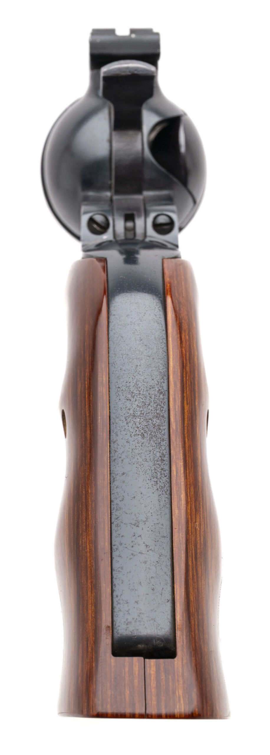 SN: 81-47442. Made in 1975, .44 MAG. with a 7.5" barrel. Bore is very good. Steel frame single-action only revolver with an adjustable rear sight, 6rd unfluted cylinder, blued finish, and target wood grips. Finish shows minor marks throughout. Overall condition is very good.