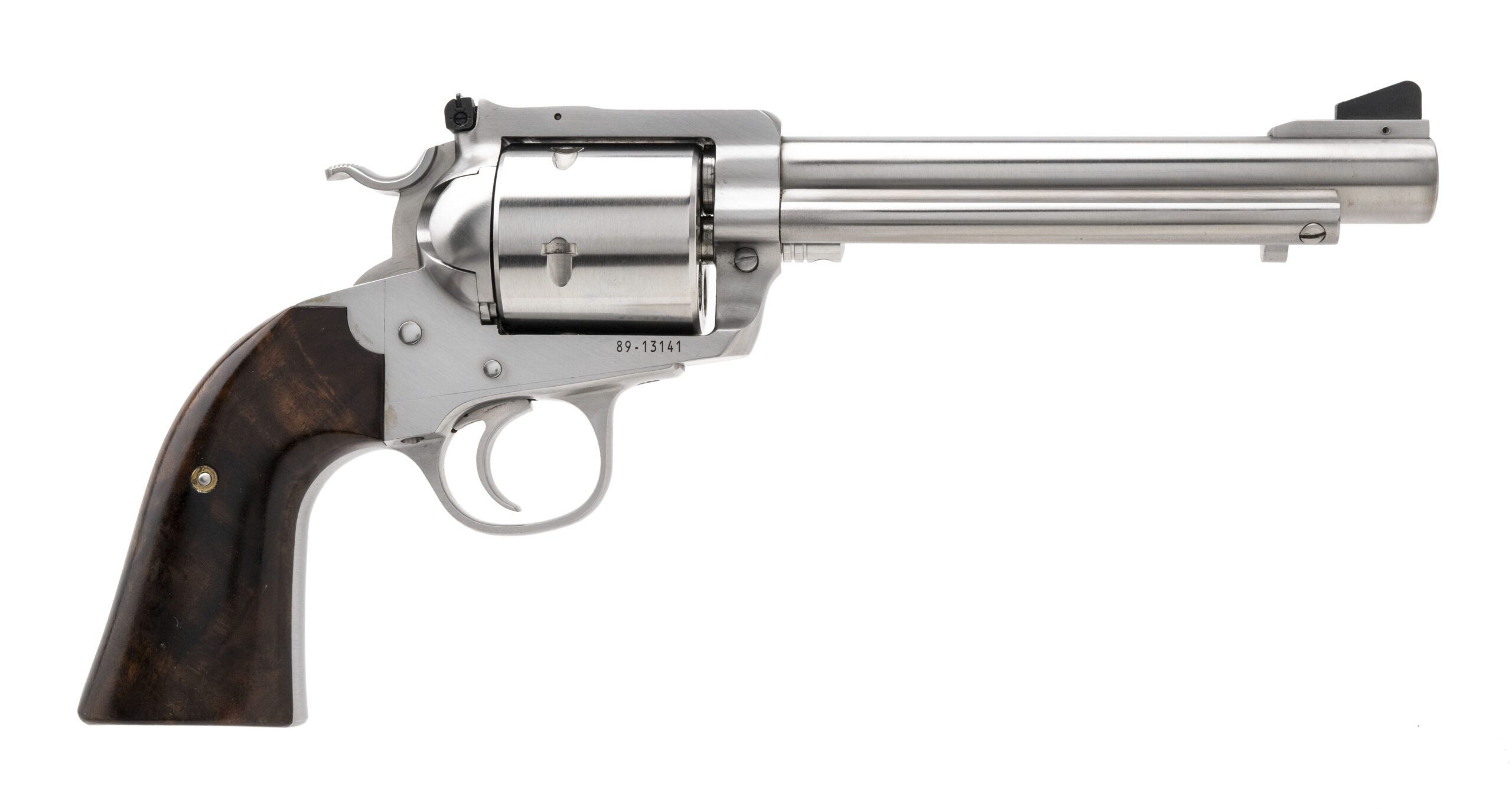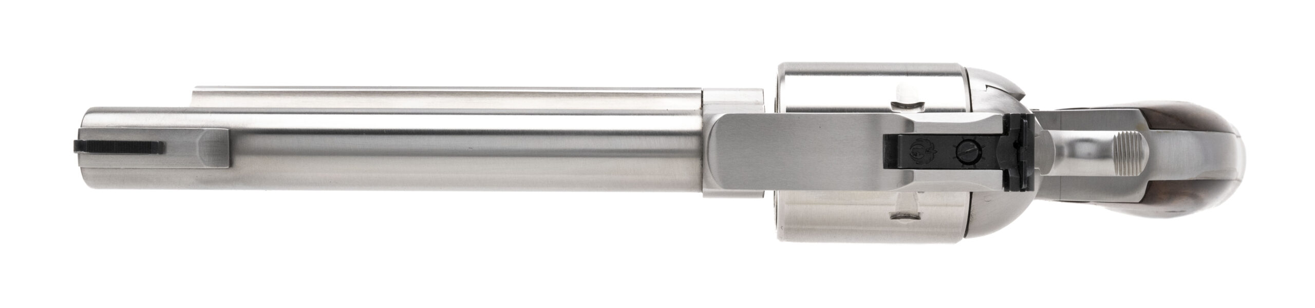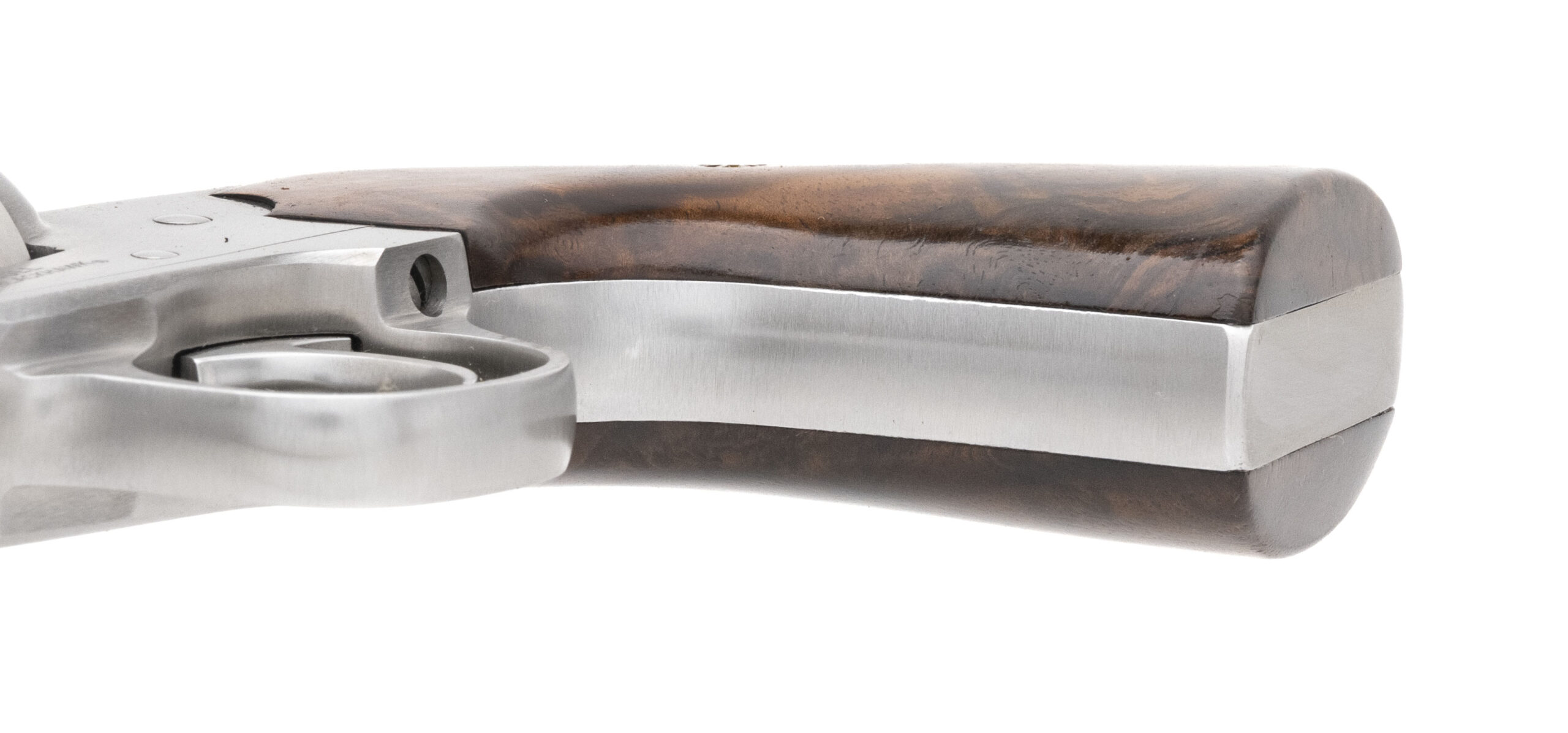 SN: 89-13141. Made in 2018, .454 Casull with a 6.5" barrel. Big bore stainless steel single action revolver with beautiful custom burl walnut grips. Excellent overall condition.