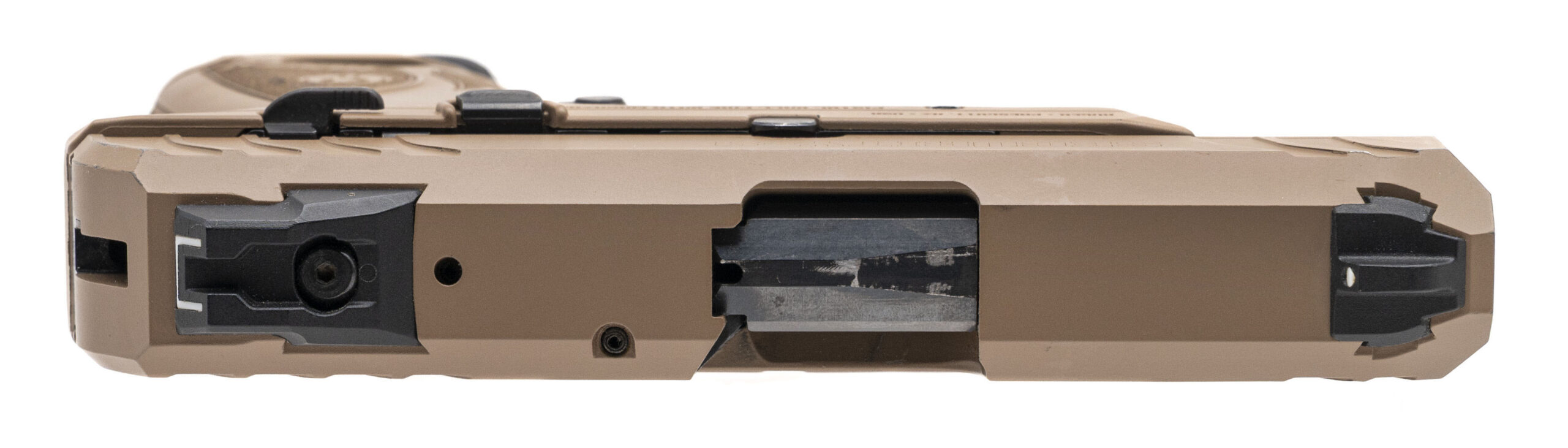 SN: 385-22893. Modern production, 9mm with a 3.5" barrel. Bore is bright with strong rifling. Compact striker fired pistol with a manual safety and an fde finish. Shows minor handling wear but the overall condition is very good.