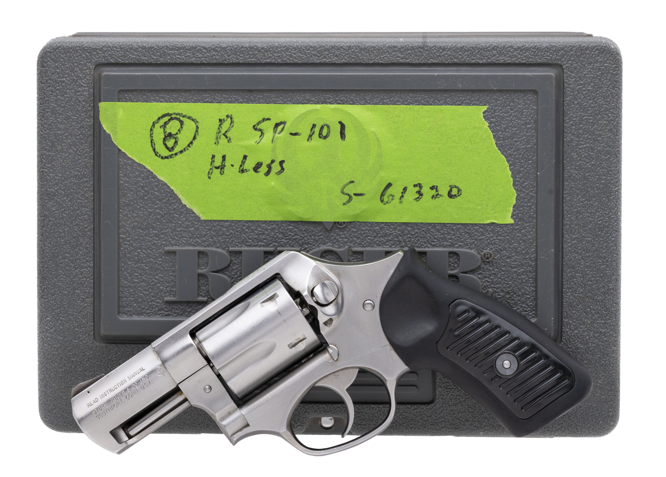 SN: 572-61320. Modern production. .357 Mag with a 2" snub nose barrel. Bore is in excellent condition. Ruger double action stainless snub nose revolver. Metal is in excellent condition. Grips are in excellent condition. Overall condition is excellent. Revolver comes with case and speed loader.